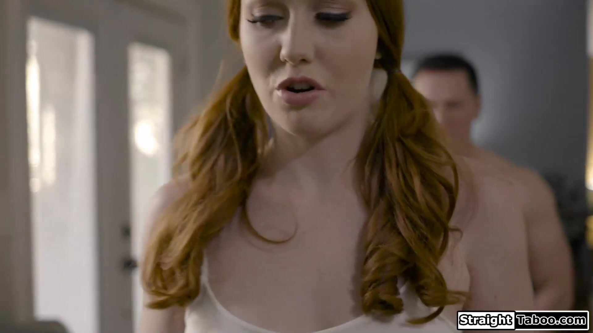 19yo babysitter Arietta Adams is shocked when her boss lays her hand on his crotch.It doesnt take long before he has his dick in the teens mouth.He even gets the redhead to rim his ass.The willing small tits ginger babe lets him anal fuck her