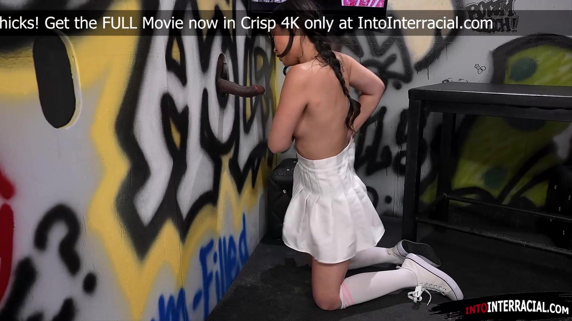Petite small tits asian Lulu Chu sees a bbc peeping through a gloryhole and wraps her lips around the boner to suck it off.The small boob brunette babe lies on her back and fits the big black cock in her tight hairy oriental pussy and is fucked by it