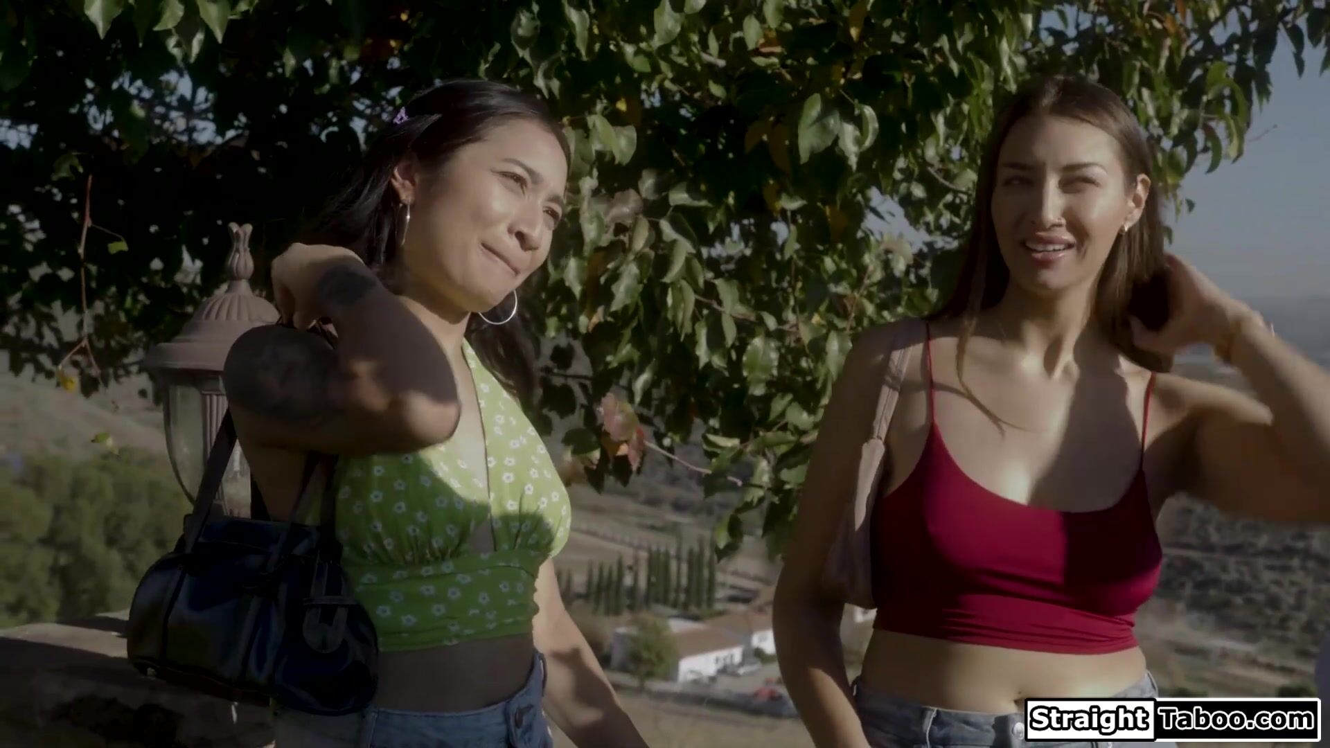 Perv guide lures two stepsisters in celebs house.Avery Black already wants his cock,but Bella Rolland is hesitant.The busty brunette watches the asian suck and joins.The big tits babe is fucked and facesits her small boobs stepsis while shes banged