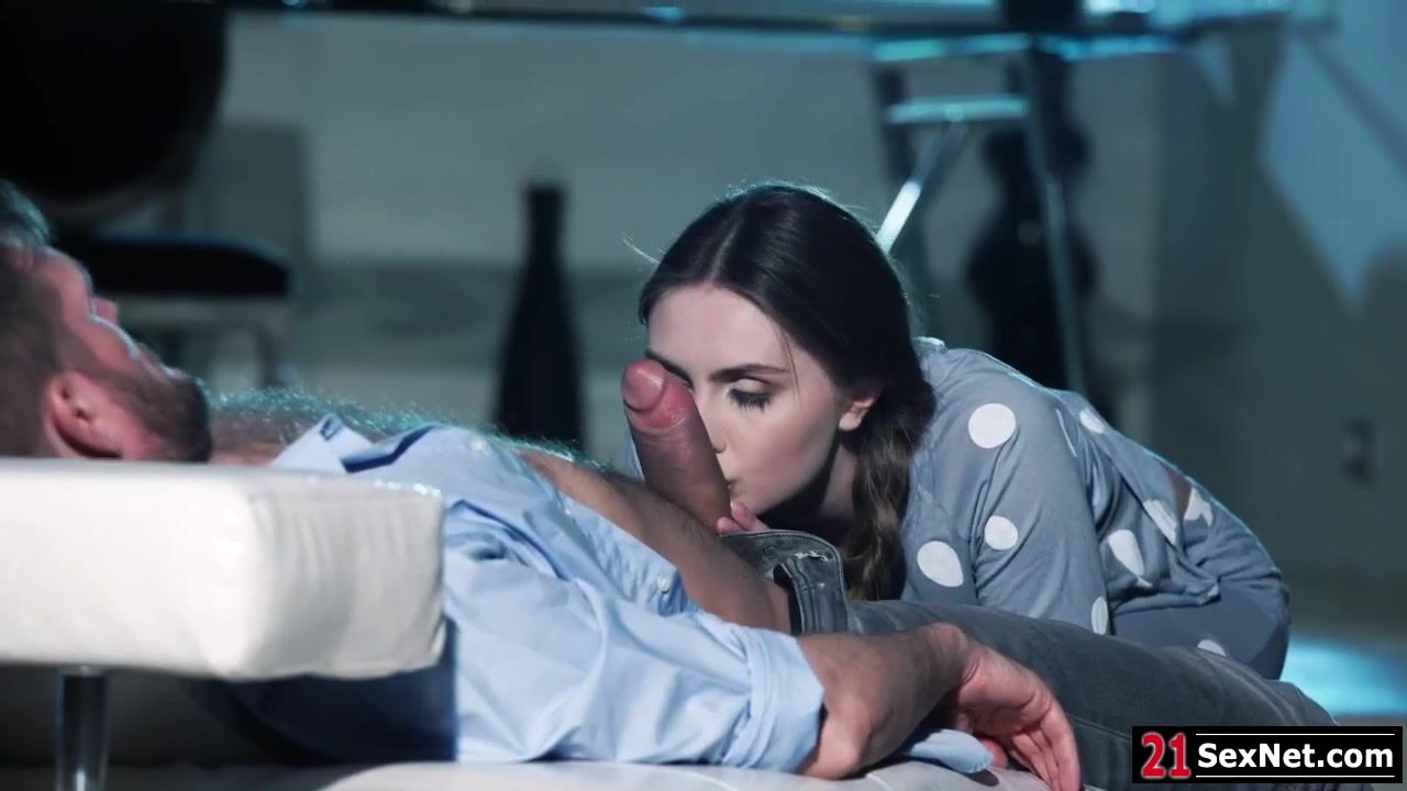 Russian Lena Reif is horny and ready to get fucked.Shes waiting for her guy to finish his work.After hes done she sits on the sofa and lets the guy caress her.He lifts her shirt and caresses her natural tits.Lena sucks his big cock then facesits him.