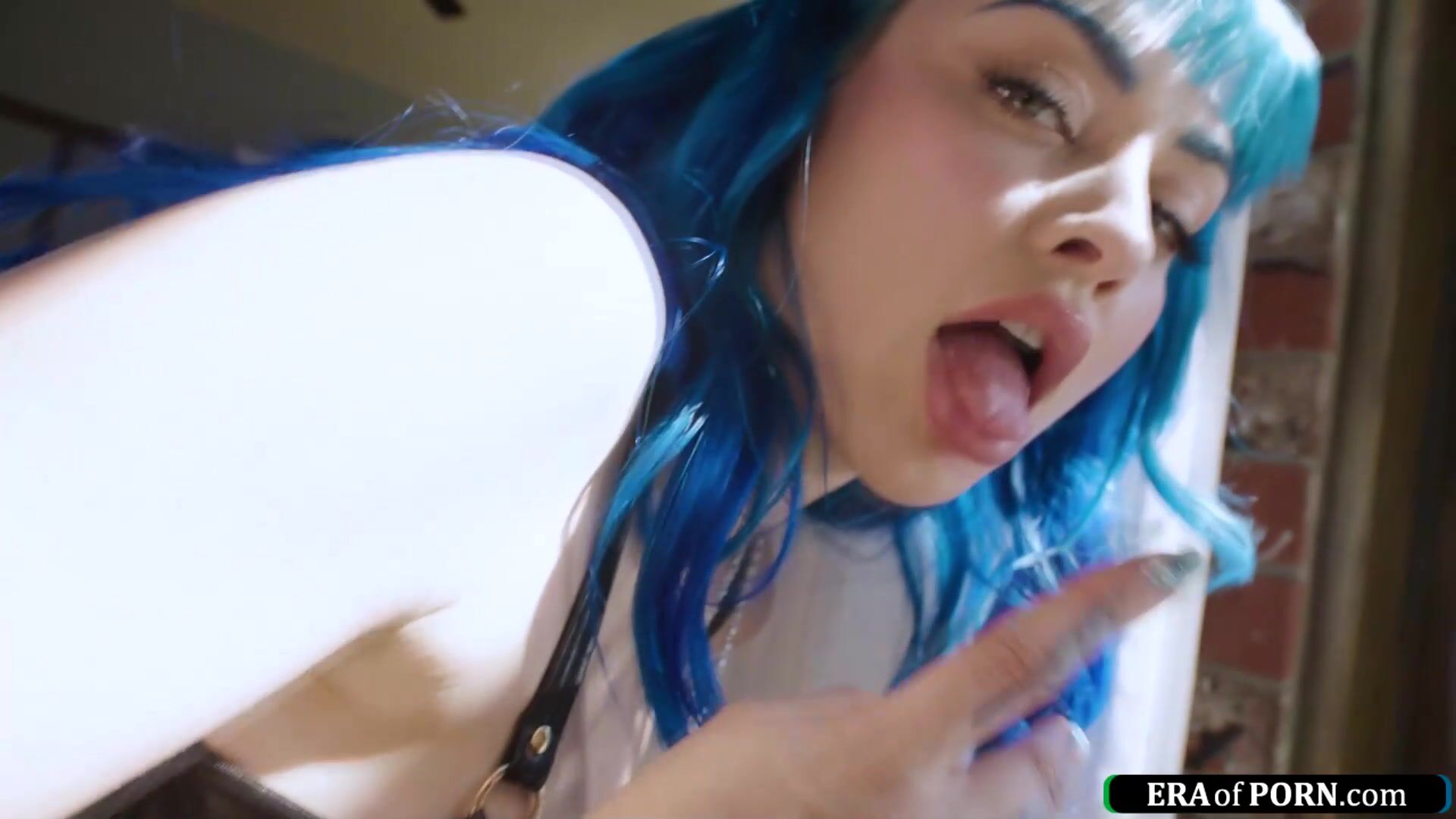 Big tits Jewelz Blu has a big ass that screams to be filled with cock.The petite blue haired babe is pussy licked with her buttplug still in.The guy rims her and she deepthroats his thick dick.The sexy slut fits his boner in her ass and enjoys anal