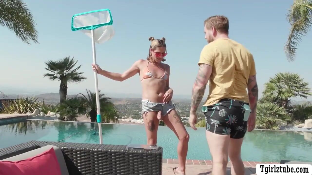 Steve Rickz cant resist the hotness of TS pool cleaner Kalli Grace.He goes to her and start sucking her hard shemeat passionately.After that,he brings her inside the house and start fucking her asshole.Go to Tgirzltube.com for discount and more.