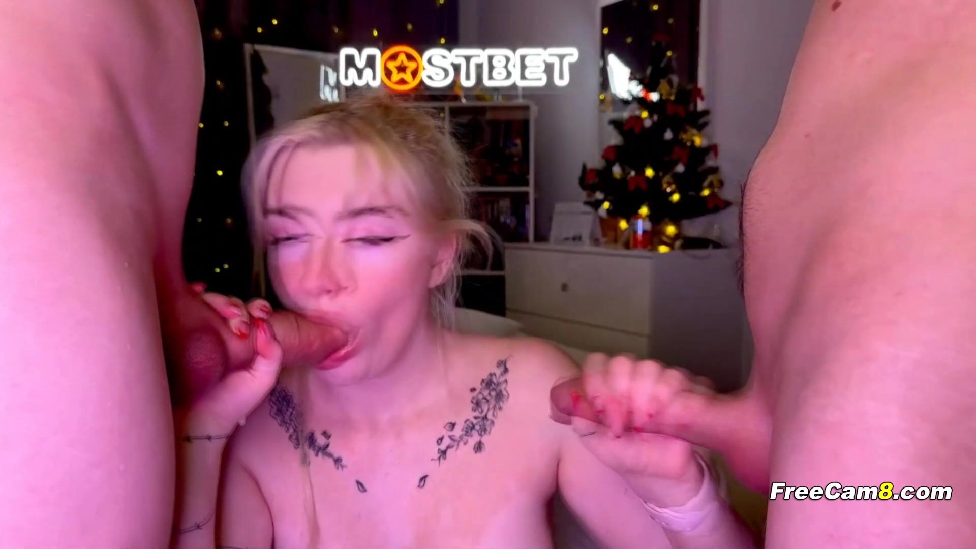 Blonde Bombshell Sucking Both Cocks at The Same Time Video