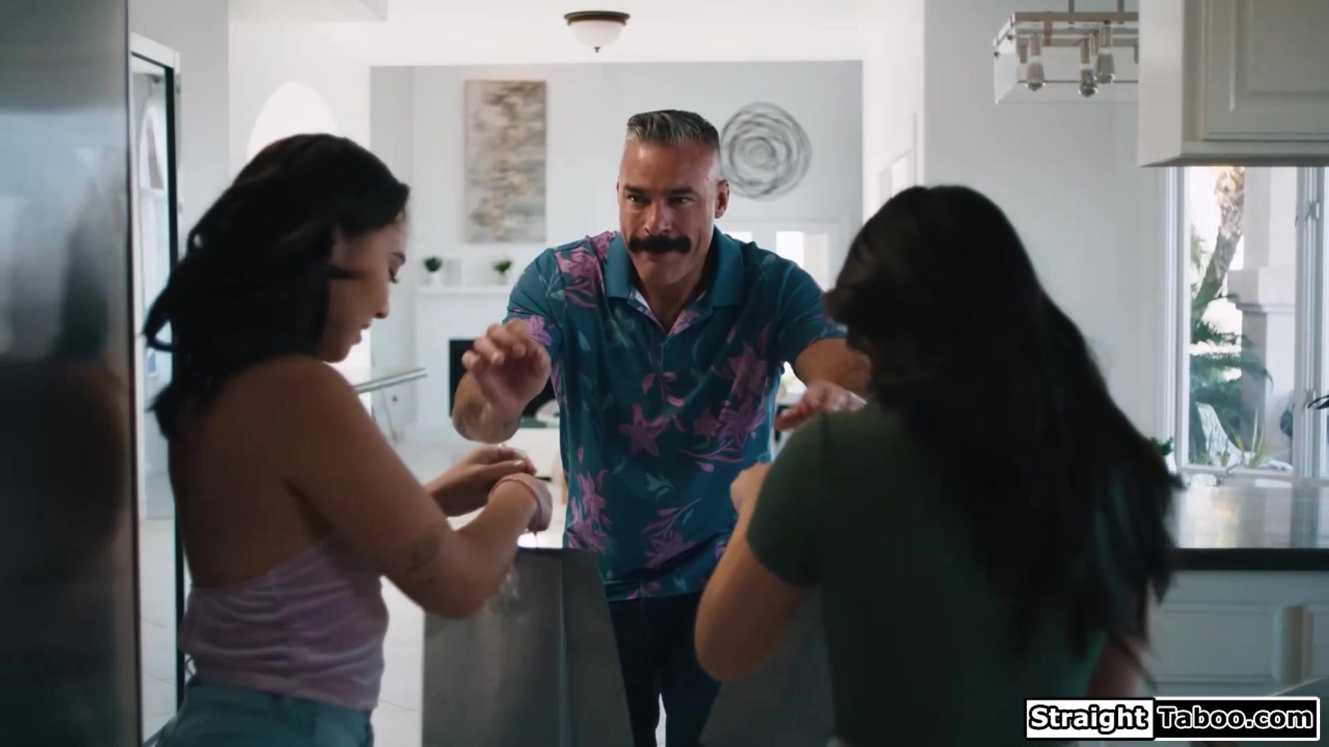Asian stepsisters Lulu Chu and Kimmy Kimm get the option to fuck their horny stepdad or get kicked out.After he gives one of his small tits stepdaughters oral the both of them deepthroat his big cock.The brunette rides dick while licking her stepsis