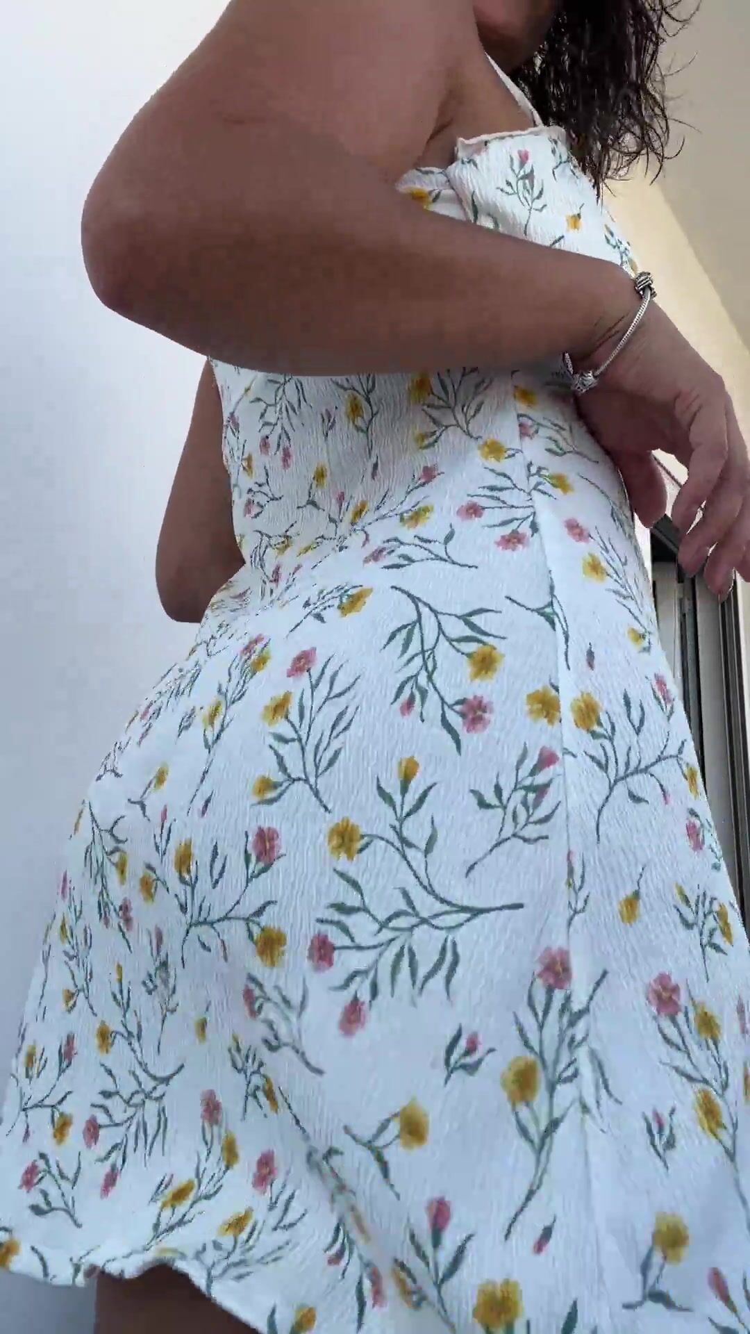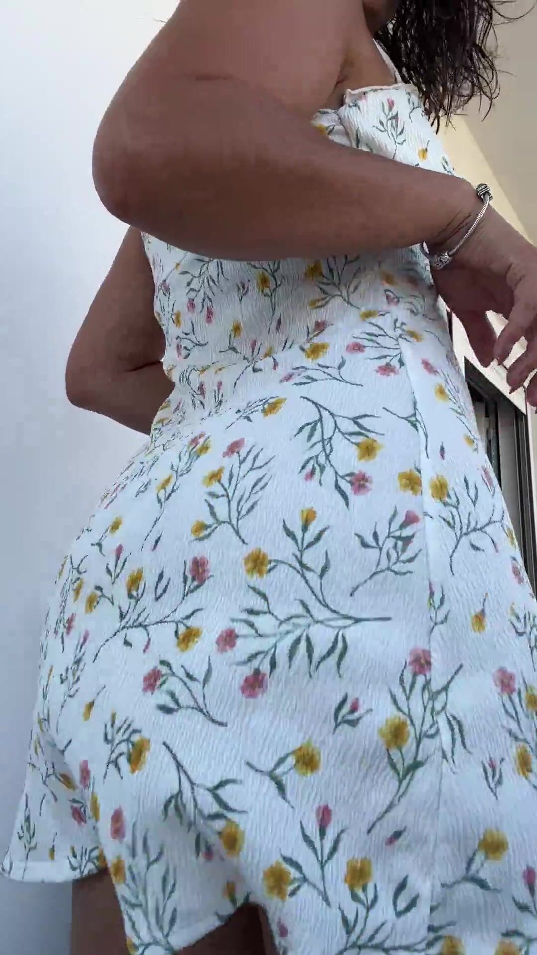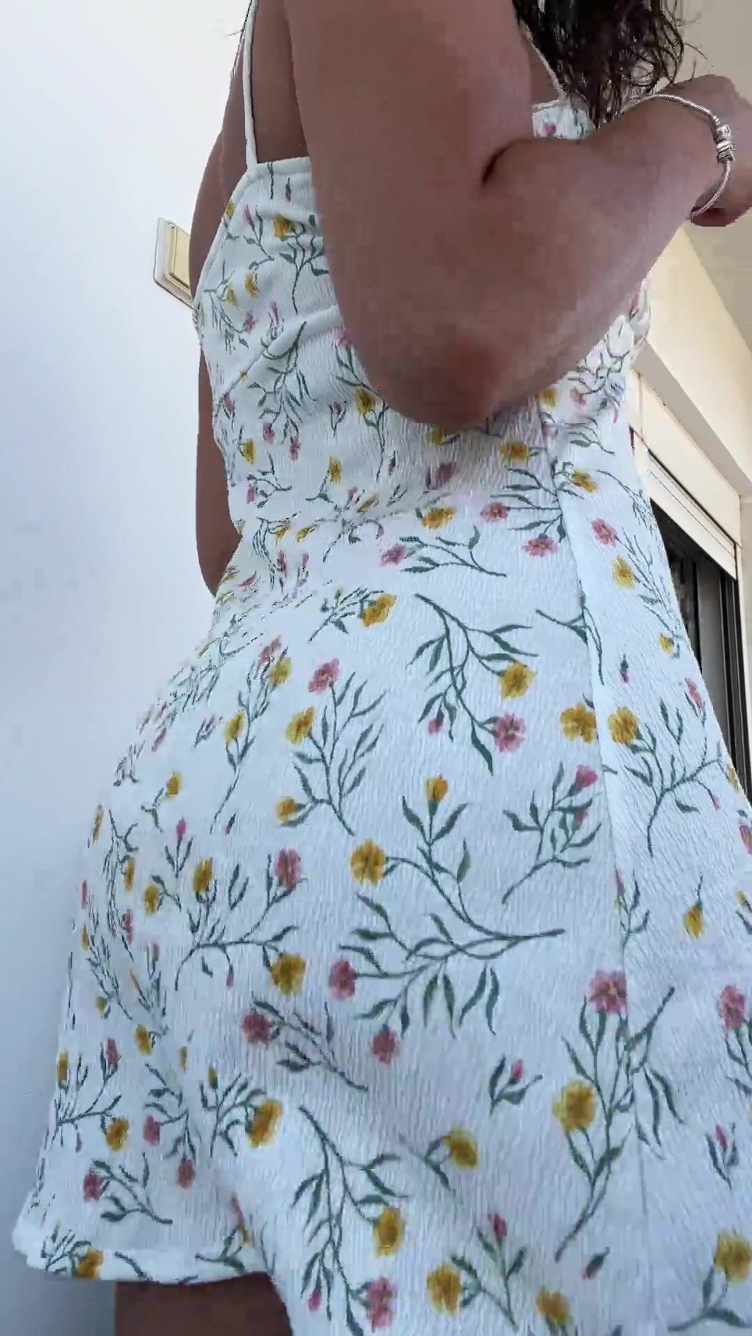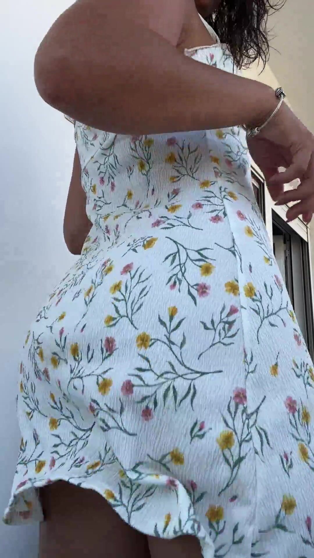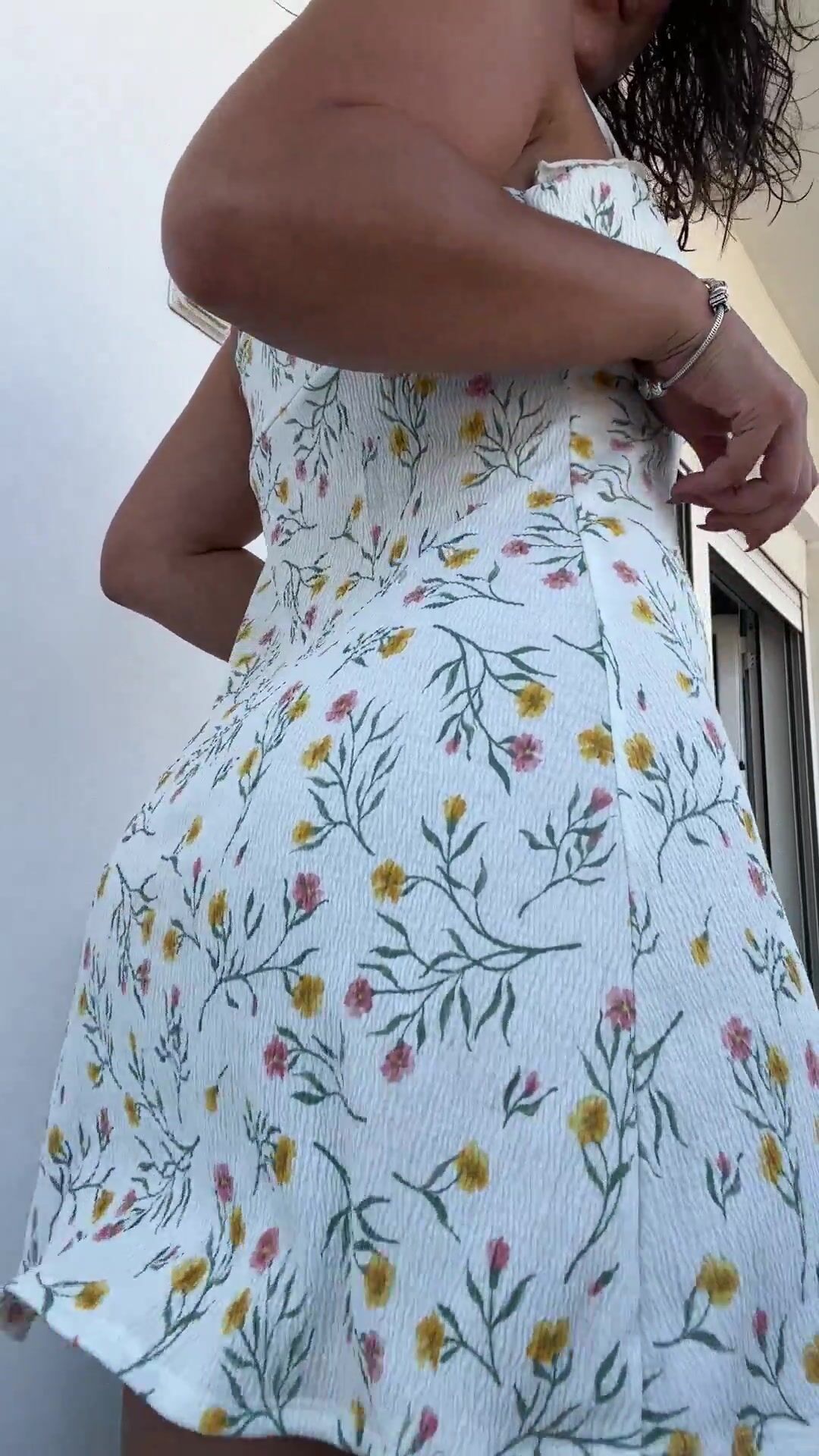 hot wife in her white floral dress getting fresh air outside freeing her butt cheeks