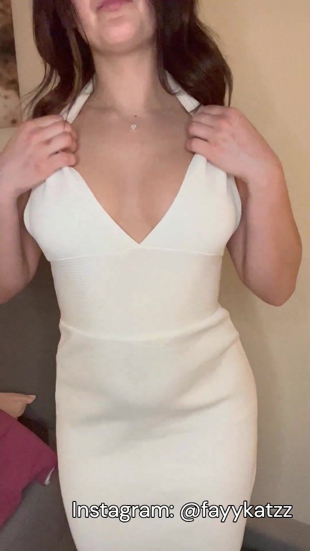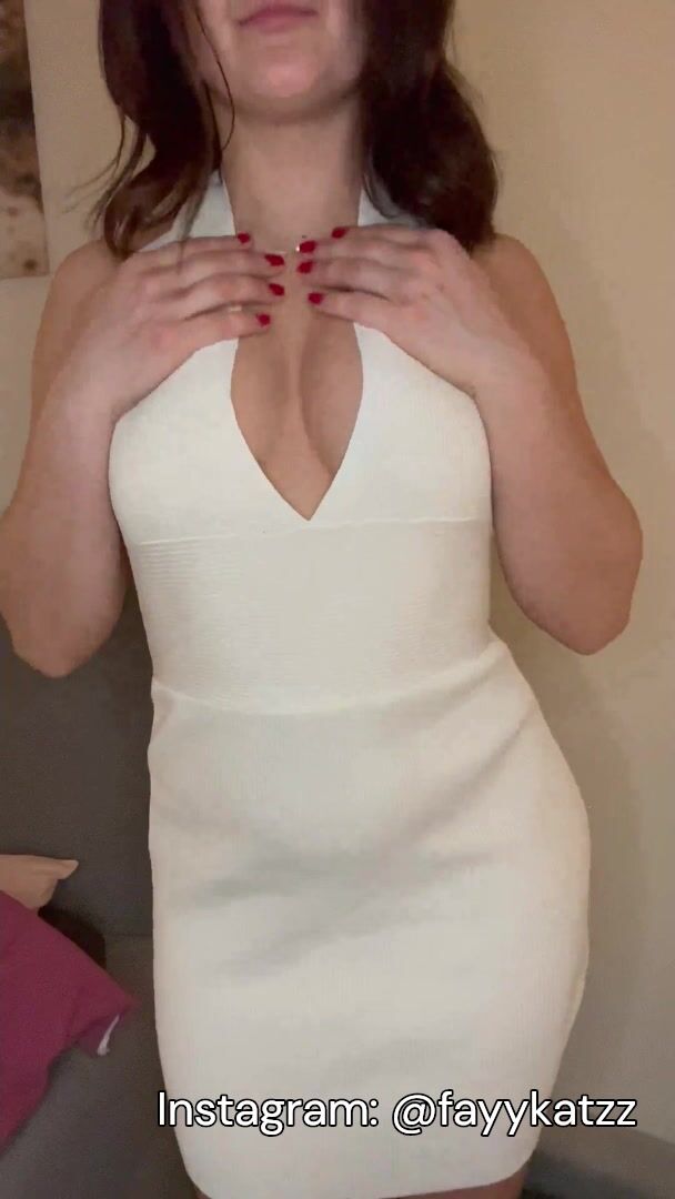 Curvy MILF Shows off her Beautiful Boobs While Wearing a White Long Dress