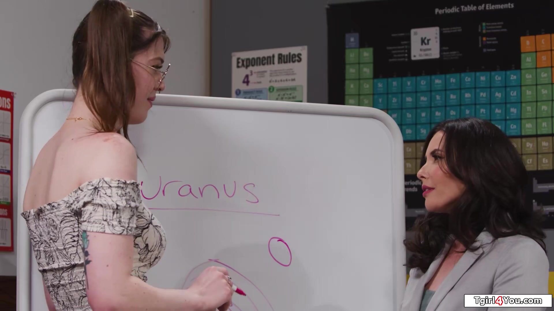 Milf college professor Casey Calvert seduces busty tgirl teaching assistent Autumn Rain.The big tits tattooed shemale licks her shaved pussy and gets her hard tranny cock deepthroated.On her desk the teacher is banged by the trans babes dick