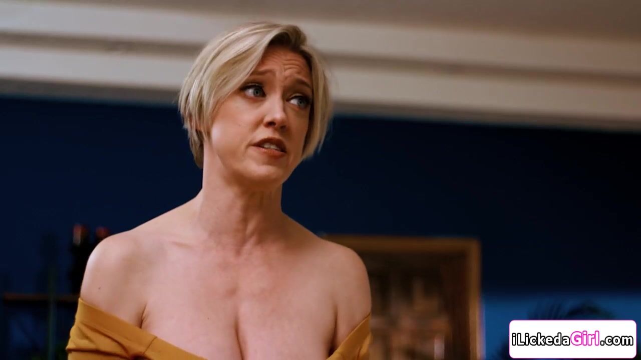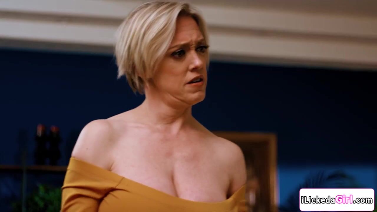 Teen Melody Marks thinks no one likes her.Her big tits stepmom Dee Williams proves her wrong and starts kissing the petite babe.Melody sucks her big boobs.The blonde milf is licking her stepdaughter's hairy pussy then facesit her and do scissoring.