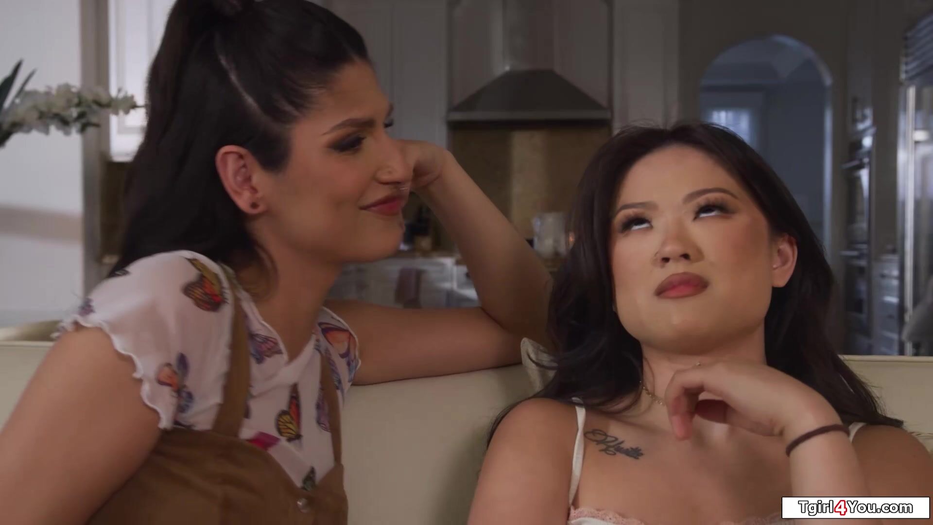 Asian Lulu Chu dares shemale gf Zariah Aura to creampie her.The latin tgirl jerks her big tranny cock while licking pussy.The small tits oriental babe deepthroats her trans dick.The brunette transsexual stuffs her boner up her girfirends snatch