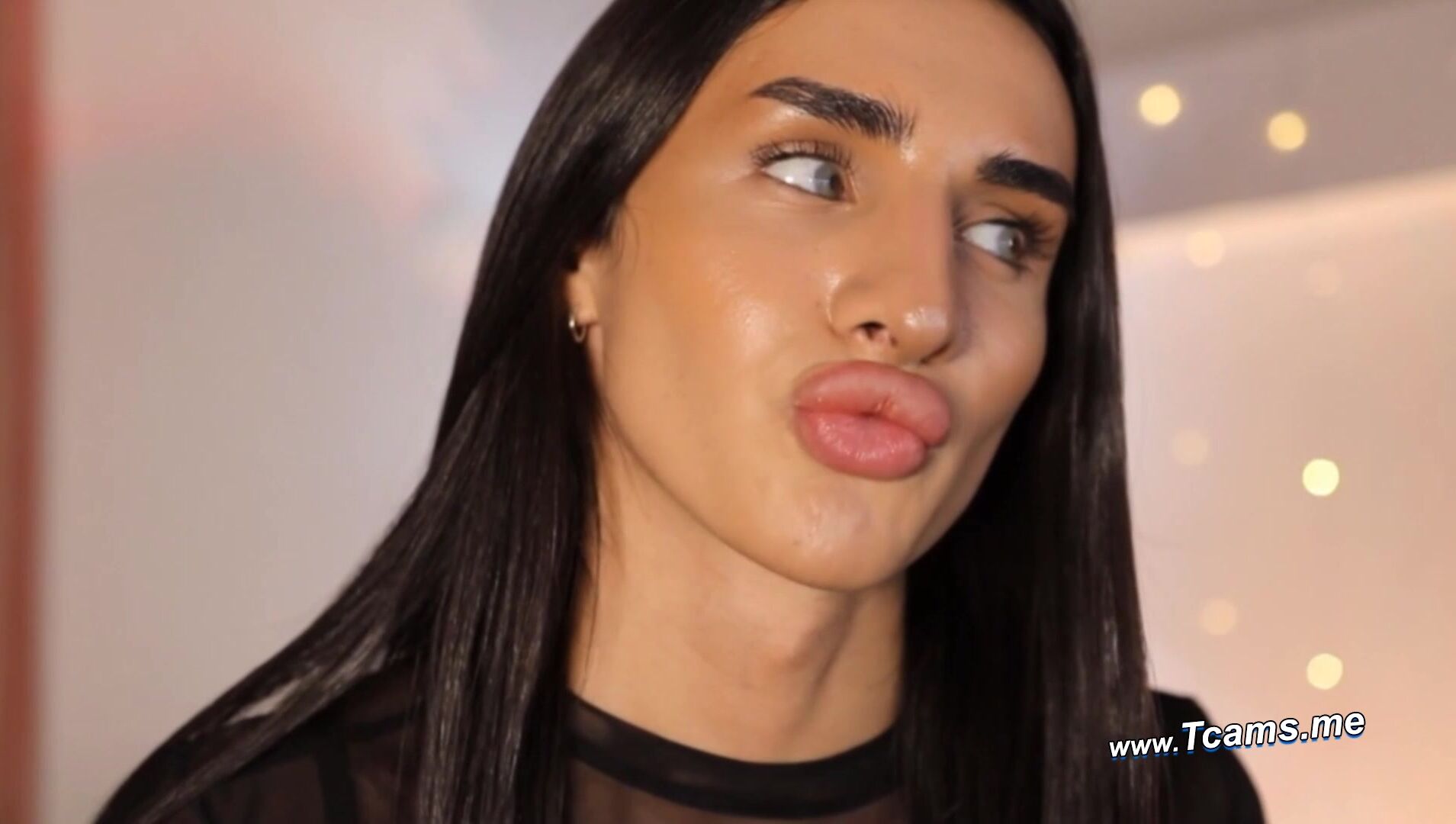 Sultry Latina Shemale Strokes Her Massive Cock on Cam Video