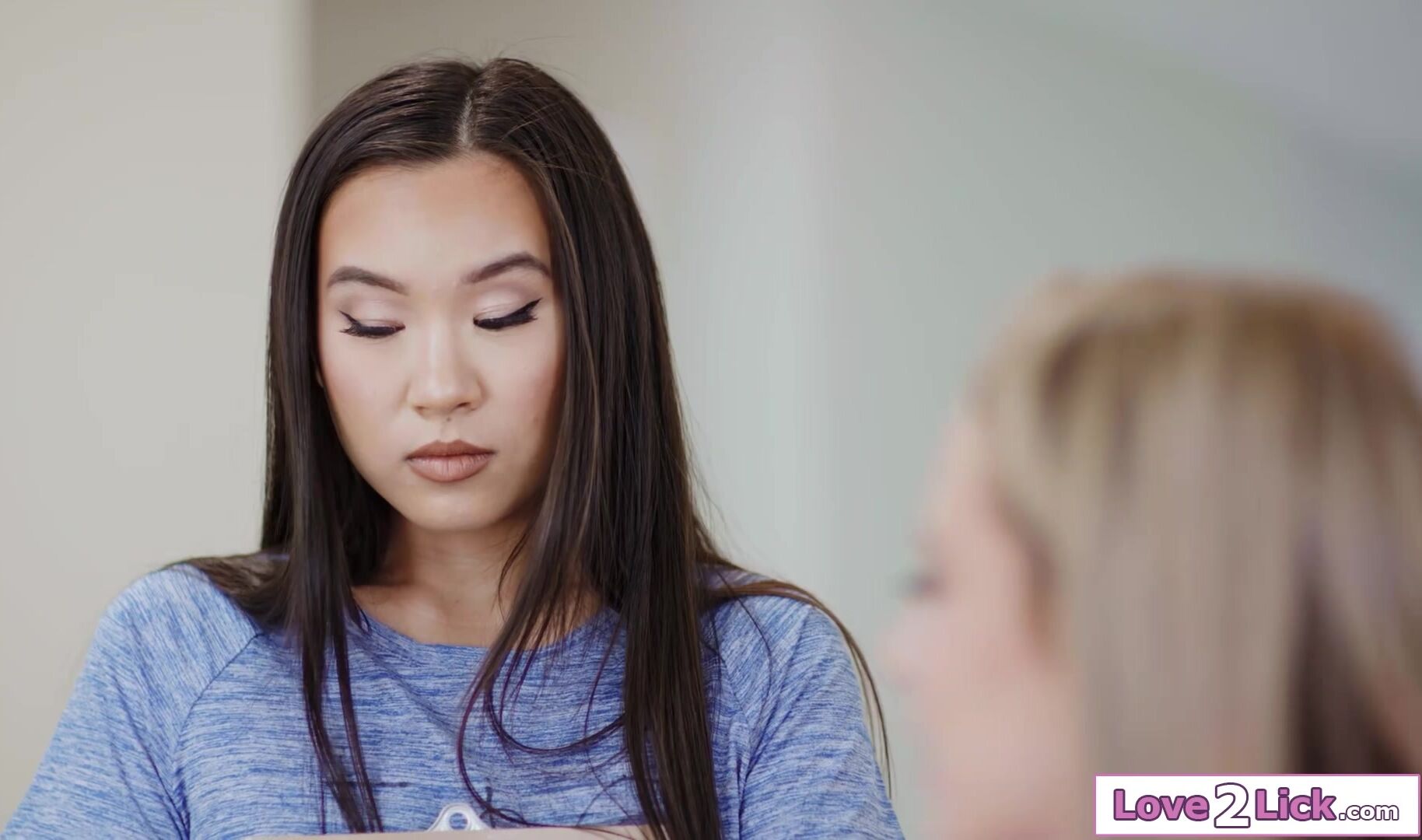 Sorority leades Kyler Quinn and Eliza Ibarra seduce the rival asian lackeys Kimmy Kimm and Nicole Doshi.The lesbians agree to a fucking foursome.The babes line up to lick pussy and rim ass.The busty asian and the busty latina facesit the teens