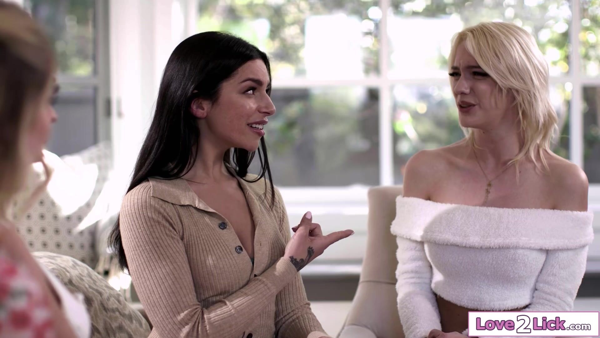 Bffs Kenna James and April Olsens new gfs Emma Hix and Kenzie Anne have dated in the past.The busty blondes suggest a lesbian pussy licking foursome.The big tits babe licks her besties hairy snatch while the other two give her oral and a rimjob