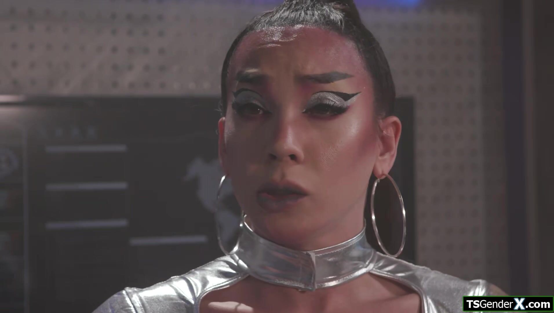 Description: After being frozen for 500 years asian trans alien Kasey Kei is horny as fuck.The shemale gives a double handjob and is rimmed.The small tits tranny is deepthroated and sucks the space captains big cock.The brunette tgirl bareback anal rides