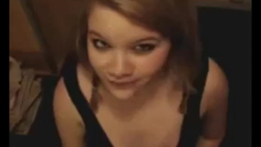 Blonde sucks cock and rides it on cam show