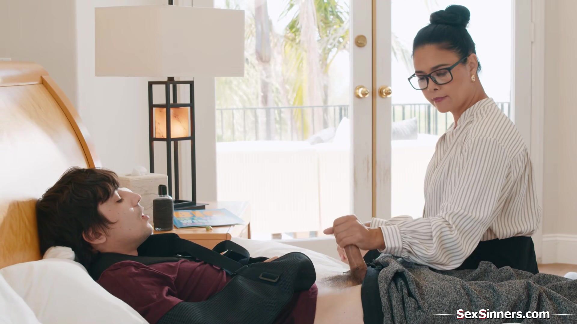 Mature Asian teacher feels so sorry for her student.With two broken arms he cant even jerk off.The milf decides she could give him a HELPING HANDjob.Now that shes gone across the line anyways she deepthroats and tittyfucks him before riding his dick