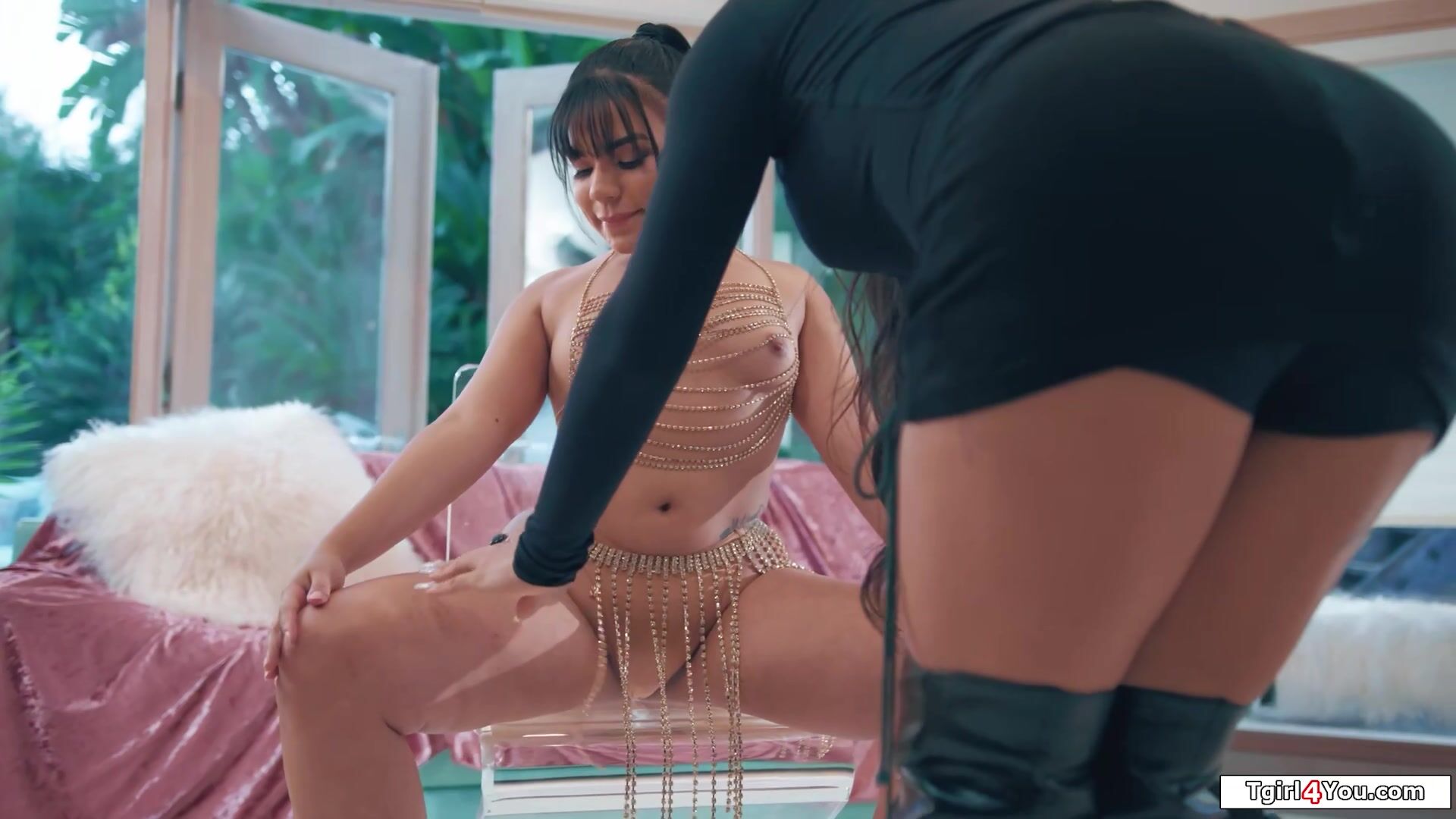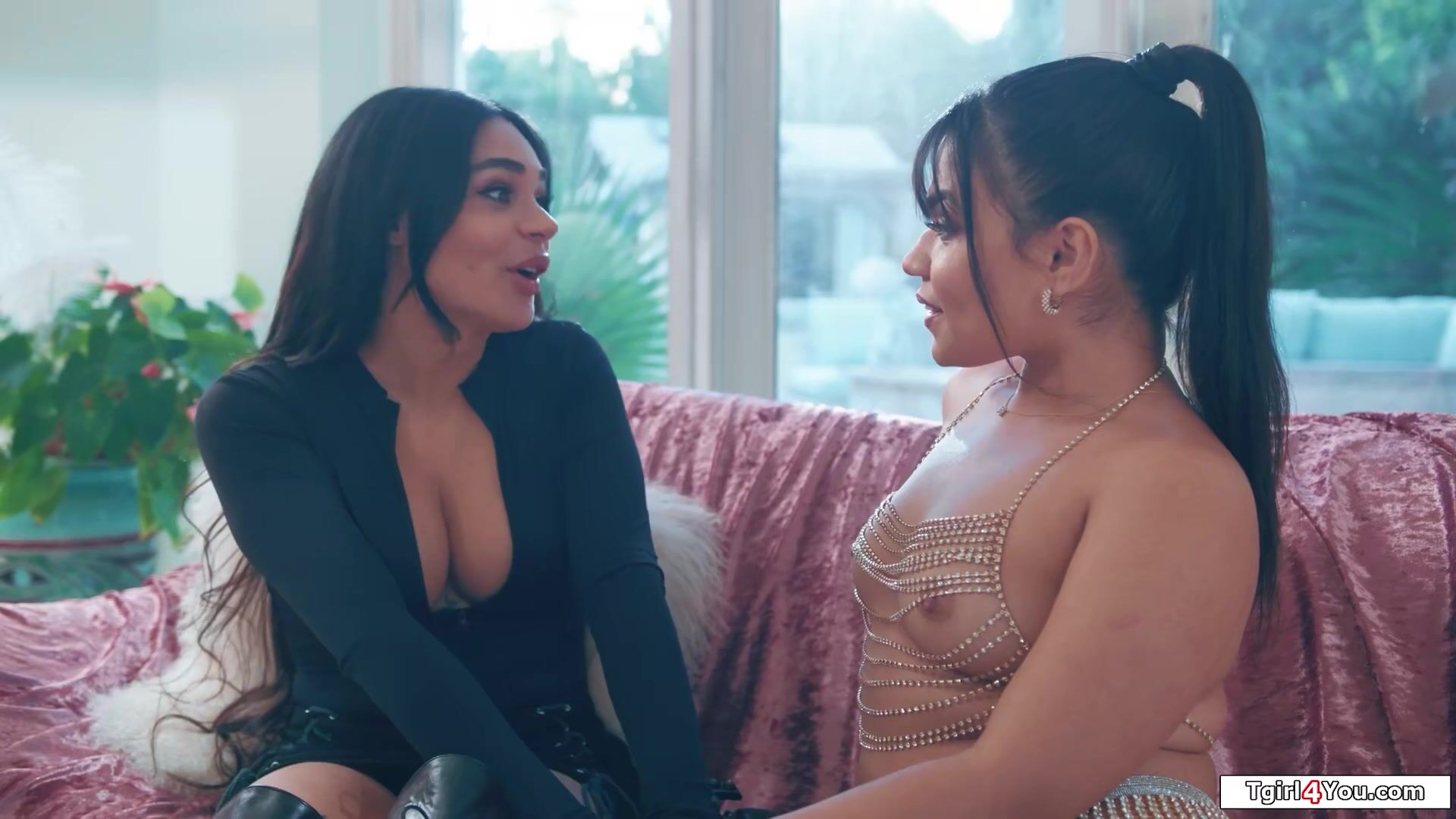 Busty big cock tgirl photographer Eva Maxim normally doesnt do this kind of thing but is attracted to her nude model Summer Col and wants to kiss her.The petite latina deepthroats the shemales big tranny cock and is pussy licked before shes fucked