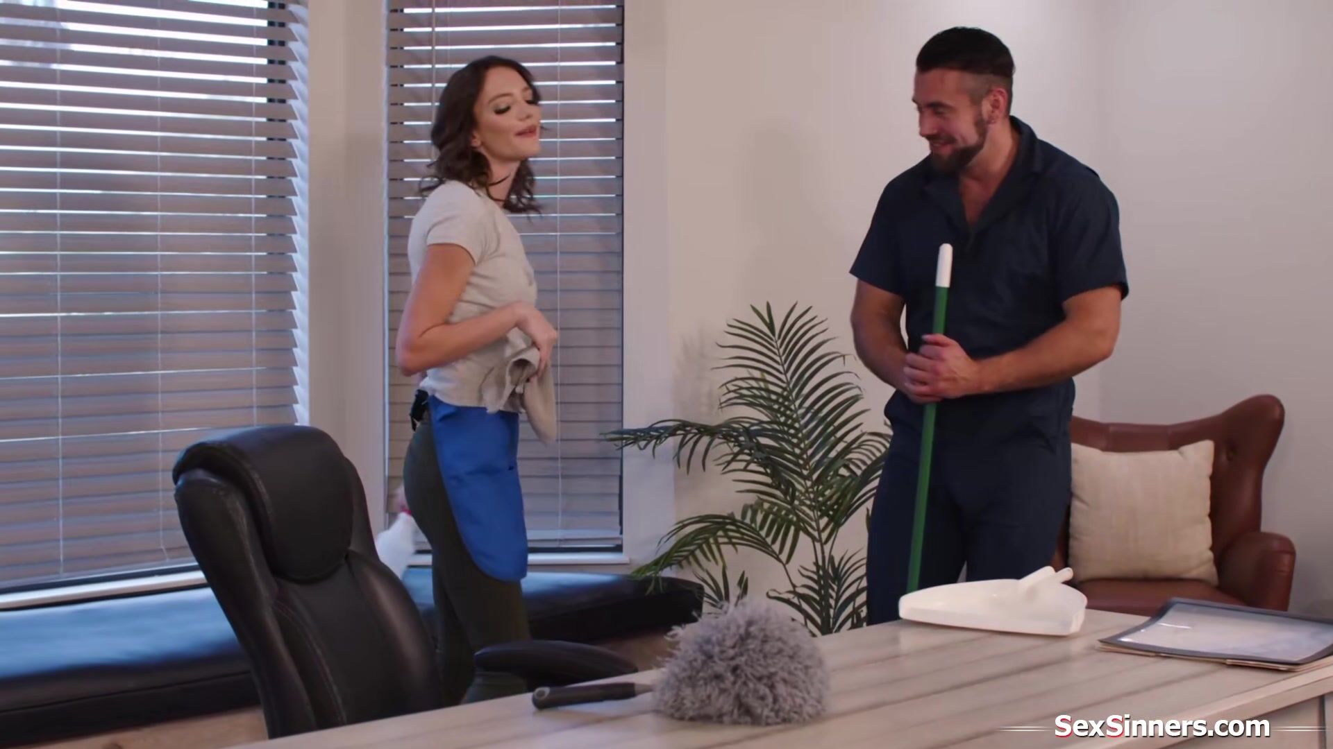Busty cleaning lady double pussy fucked Video