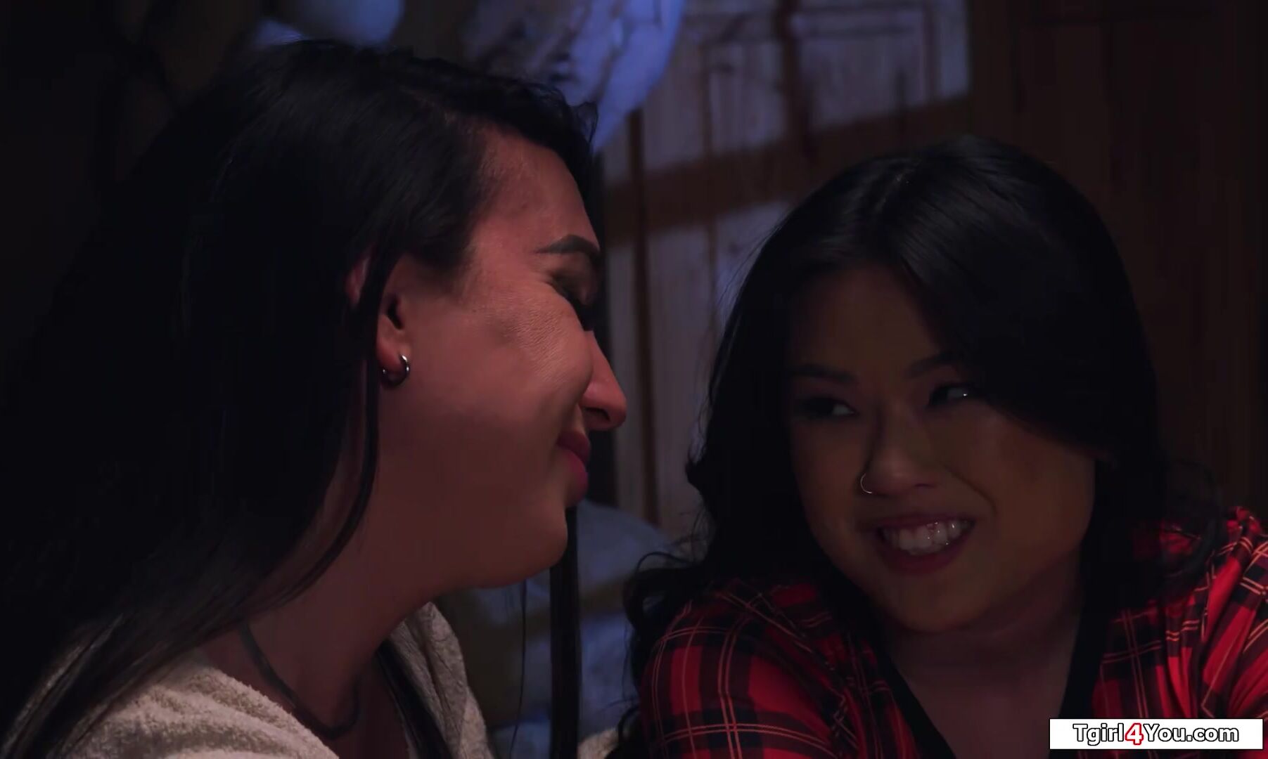 With no heat in their condo petite asian Lulu Chu and her trans gf Kasey Kei decide that sex will warm them up.The tgirl kisses her girlfriend and sucks on her small tits before she gets a blowjob.The shemale rims her and bangs her tight pussy