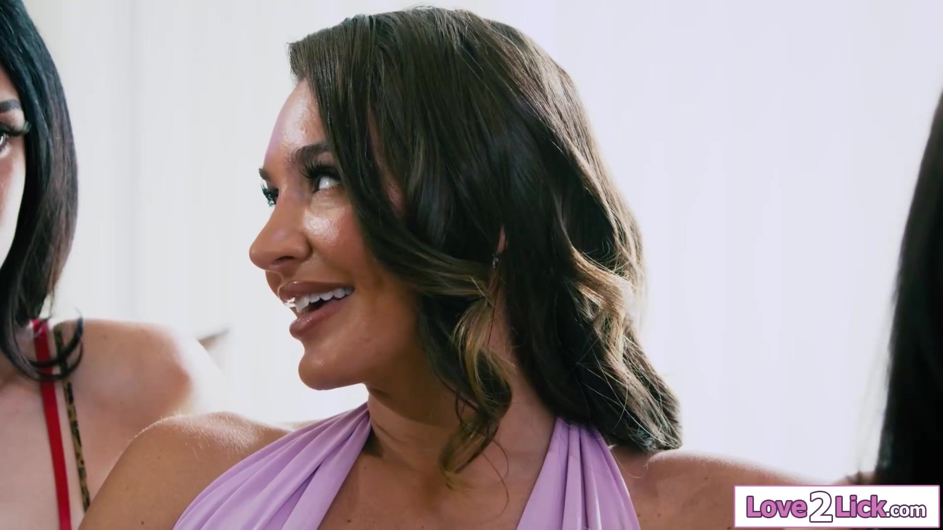 Lesbian gfs Lilly Bell busty tattooed Charlotte Sins n big boobs Ella Reese cant believe their luck when straight girl Whitney Wright is willing to try pussy licking.The small tits brunette gets oral from all three babes.They all line up to eat pussy