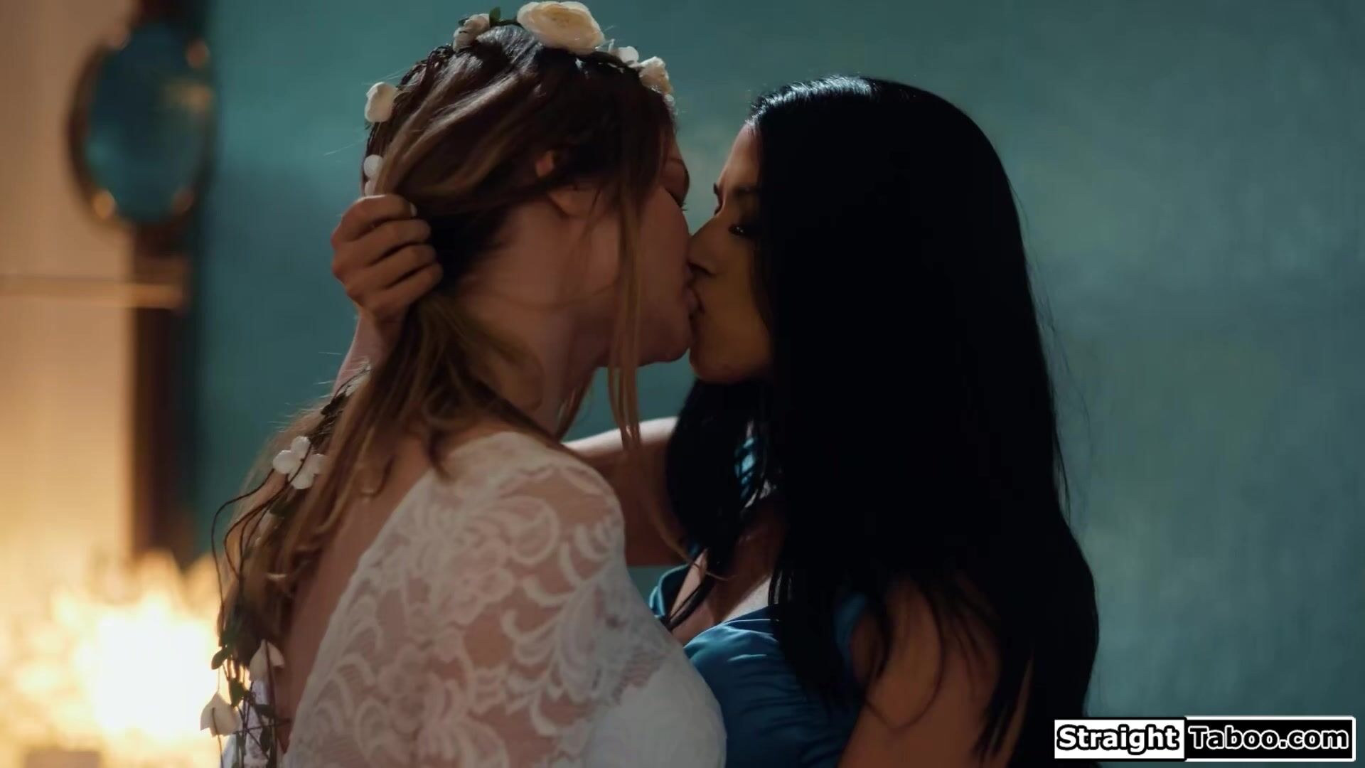 Big tits Bunny Colby is about to get married but she ends up with her grooms lesbian stepsis Alex Coal in the bathroom. Alex gets the chance to fuck her best friend. Bunny gives in as they kiss. She is letting Alex touch her pussy and then lick it.