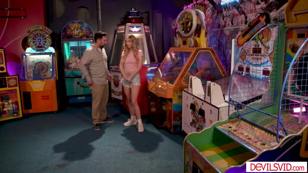 Blonde teen Sky Pierce wants to play with her stepdad in the amusement park. She wants to give him blowjob but he hesitates. Eventually he gives in seeing his stepdaughter naked. Sky sucks his big cock, then lets her old man fuck her shaved pussy.