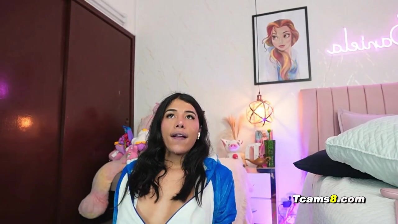 Gorgeous latina trans in pajamas suit jerks in sucks dildo Video