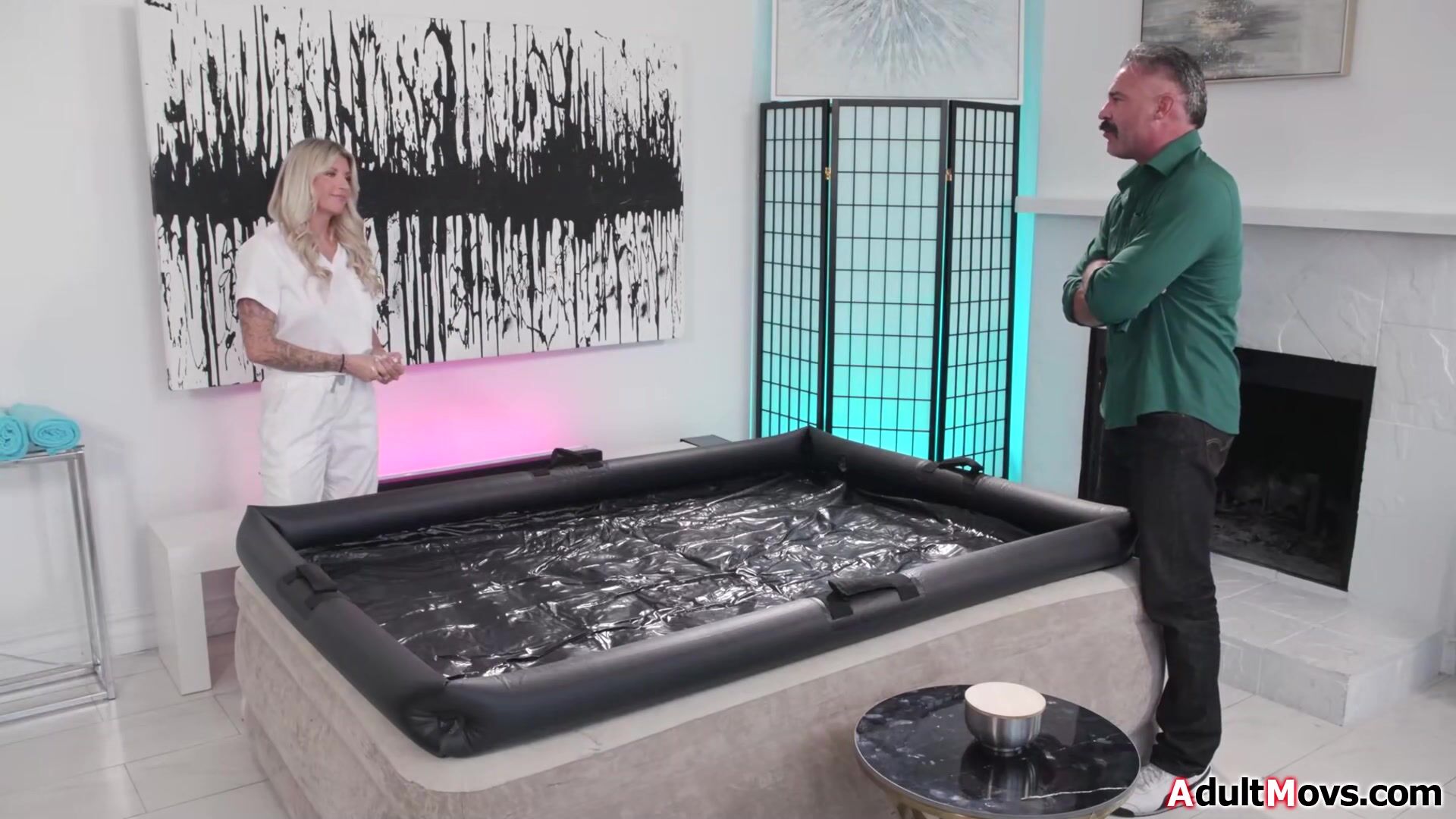 Busty masseuse Taylor Wild is shocked her next client is her brotherinlaw.They both decide to continue.The big tits milf oils up and gives him a nuru massage.The blonde slides her pussy over his big cock and is deepthroat facefucked and banged