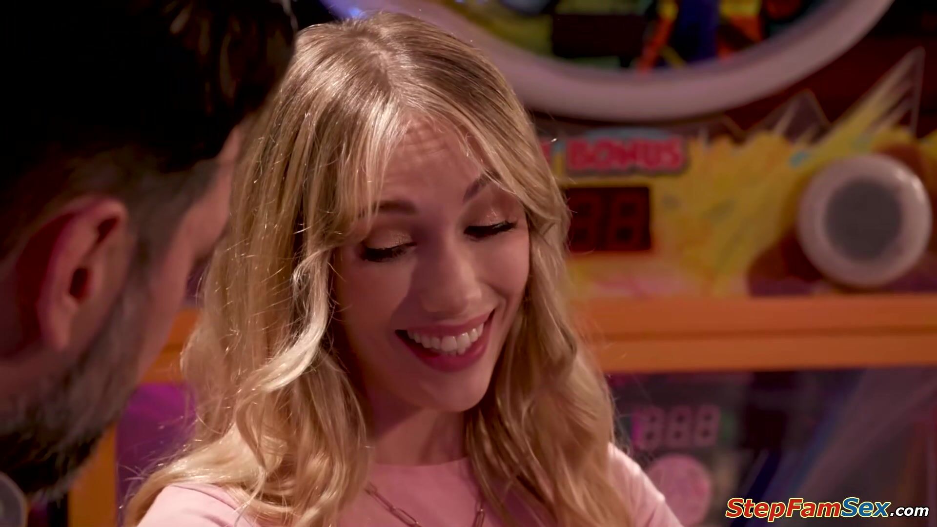 Stepdaughter Sky Pierce wants to spice things up and blow her stepdad at the arcade.The small tits petite blonde is deepthroat facefucked and banged in her shaved pussy.The babe sucks her stepdaddys uncut cock before she is fucked again in public