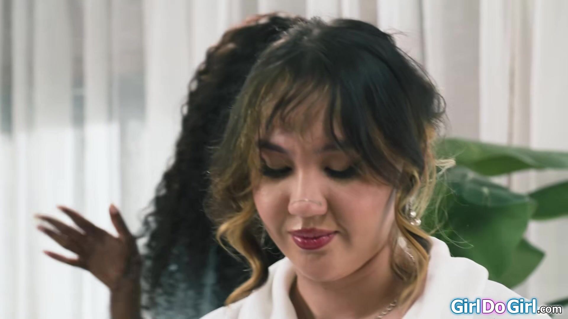 Description: Big ass Asian Tomie Tang arrives at Mocha Menages BnB the breakfast and backrubs.The ebony milf gives special massages which include oral.The black babe kisses her small tits client and sucks on her boobs.The lesbians lick each others pussy