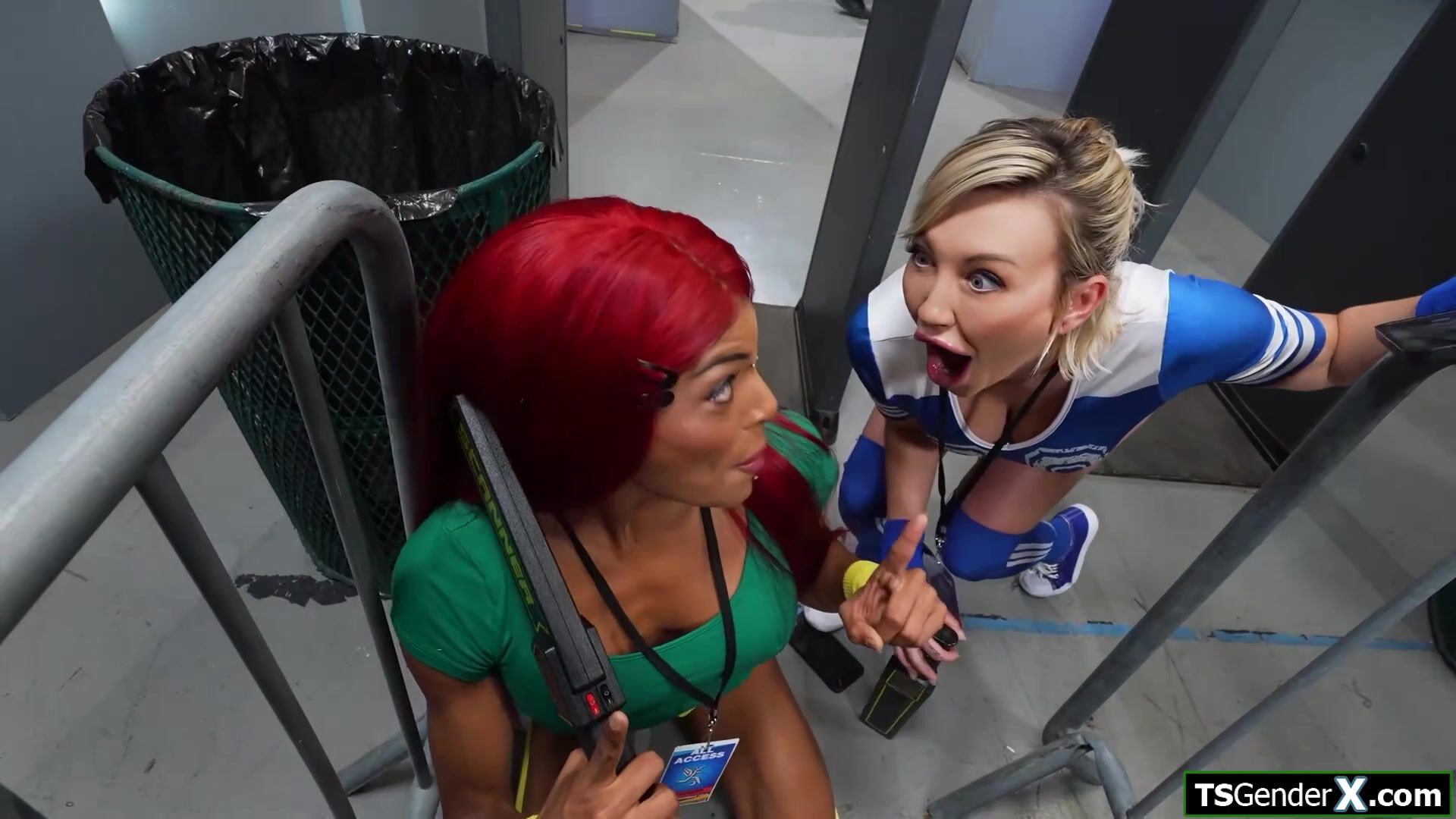 Shemale security rather fucks than check Video