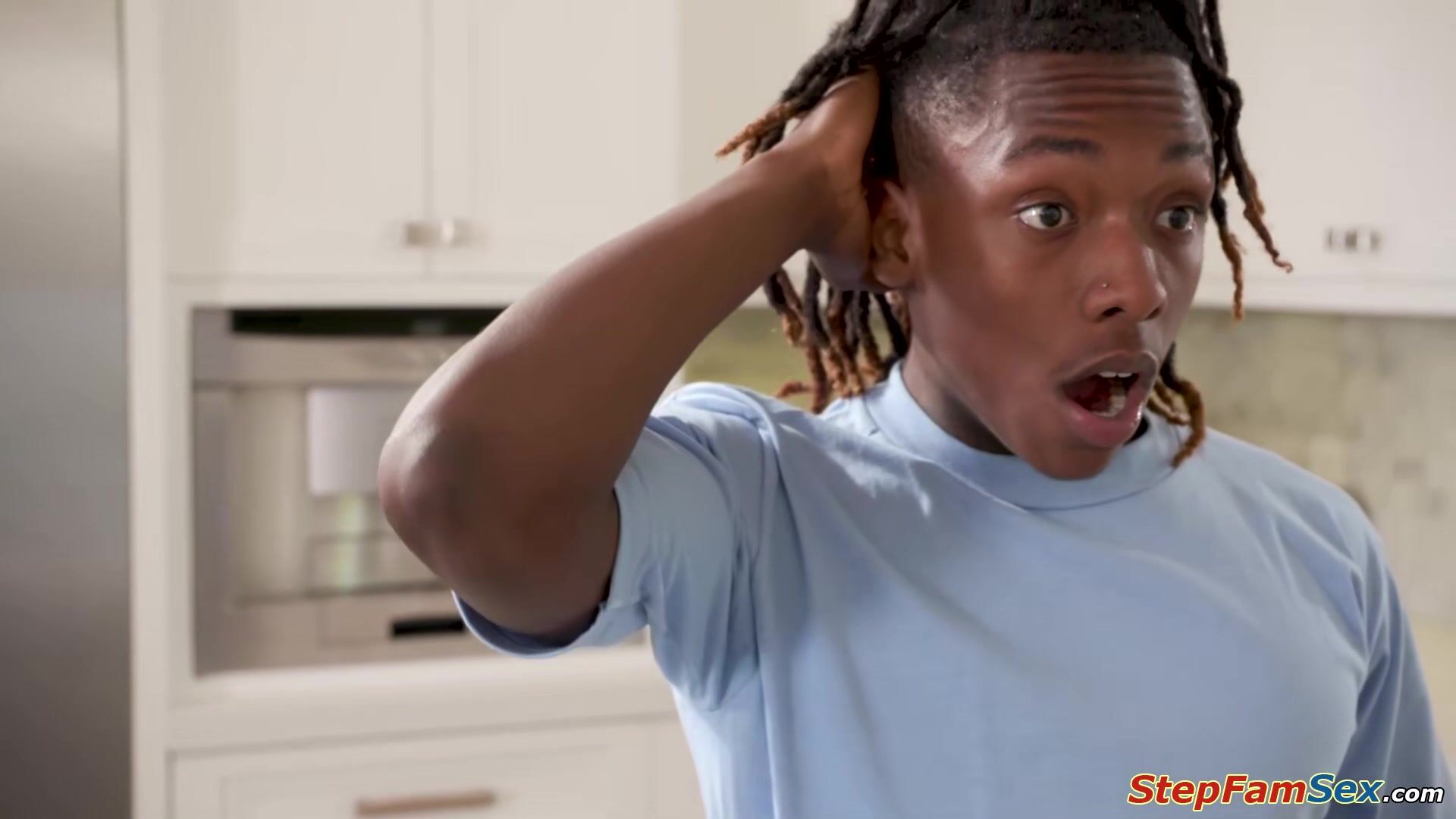 Why dont you impregnate your big tits stepmom the fun way.Black stepson Mighty Dee is shocked when his busty milf Danielle Renae asks him to fuck her.The blonde deepthroats his bbc and tittyfucks him.He pumps his big black cock in her shaved pussy