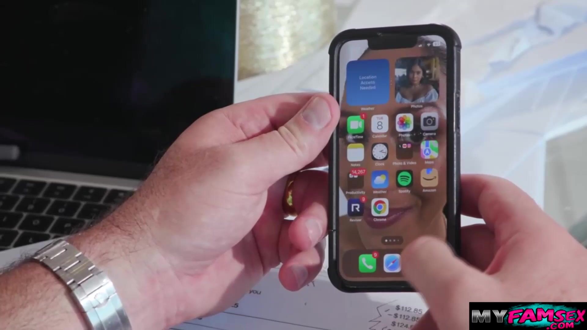 Sending my stepdad a video of mine toying my pussy.After that,I give him a footjob and suck it passionately.In return,he licks and fucks my tight asshole so deep and hard in the kitchen.Go to Myfamsex.com for the full video of this and more.