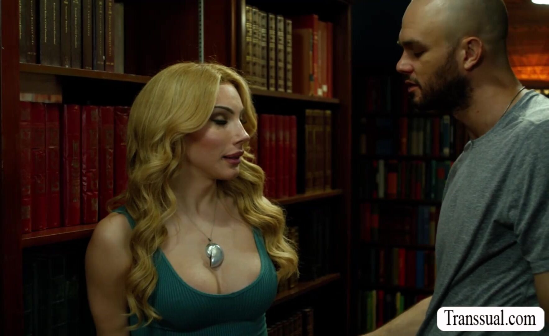 Busty gorgeous Trans librarian meets a bald guy in the library.She start sucking his hard big cock while no ones watching and she lets him bareback fuck her wet asshole so hard.Go to Transsual.com for the full video of this and more.