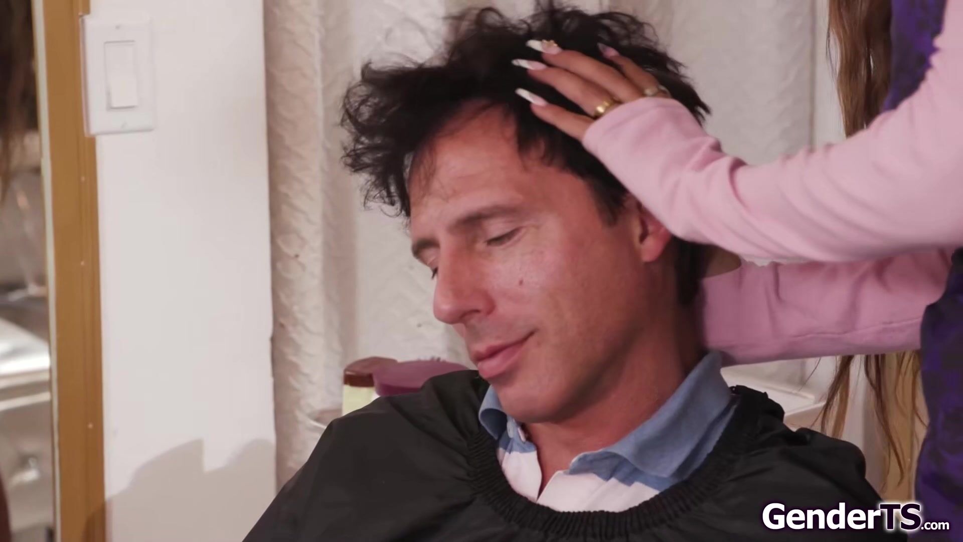 Reese Rideout is in for a surprise when shemale hairdresses Victoria Grant takes out her big tgirl cock.The busty trans lets him suck her off and deepthroats his dick.The big tits tranny double handjobs before she bareback anal rides her customer