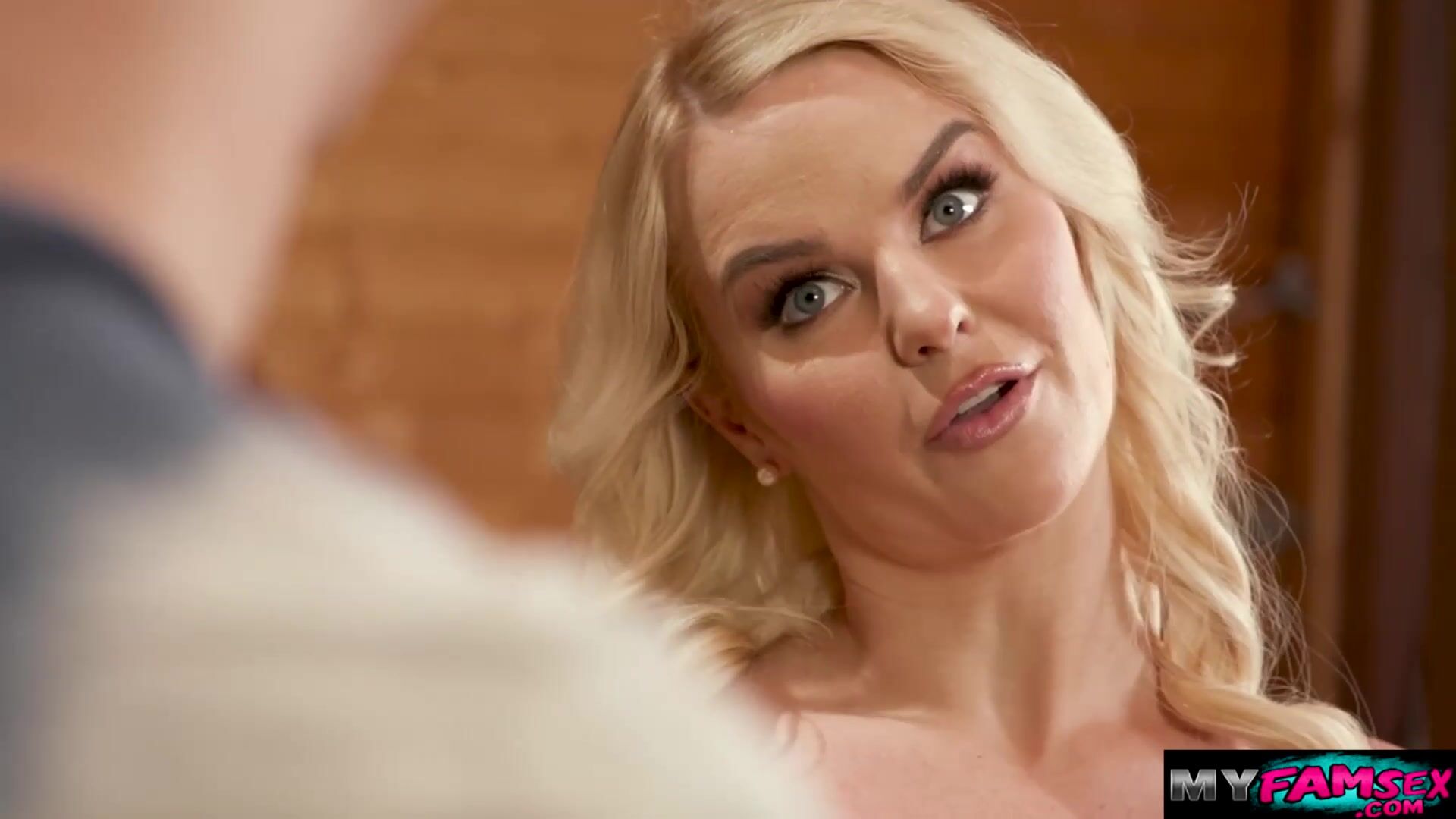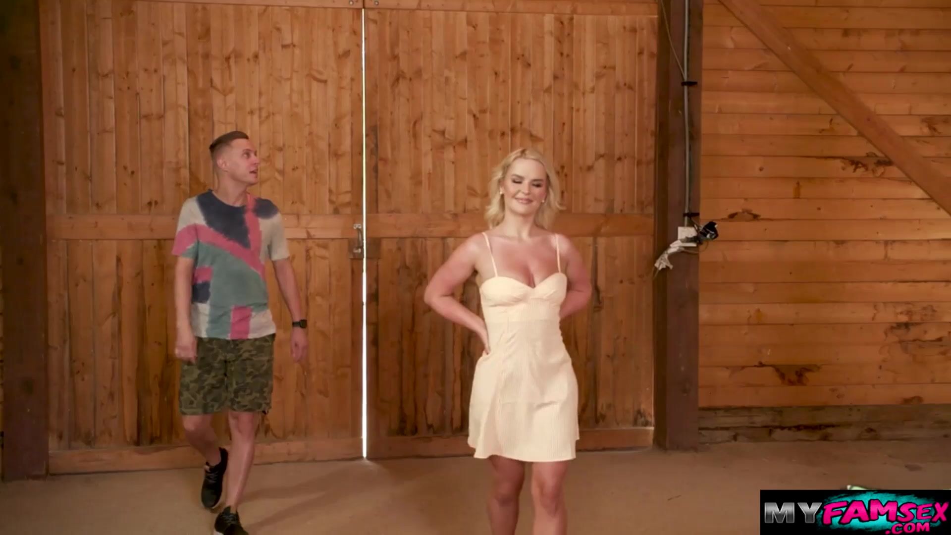 Teen blonde brings her boyfriend at her house to meet her stepmom.Her stepmom tells him that if he wants to fuck her he must fuck her stepmom first.They go inside barnhouse and start fucking and go to Myfamsex.com for the full video of this.