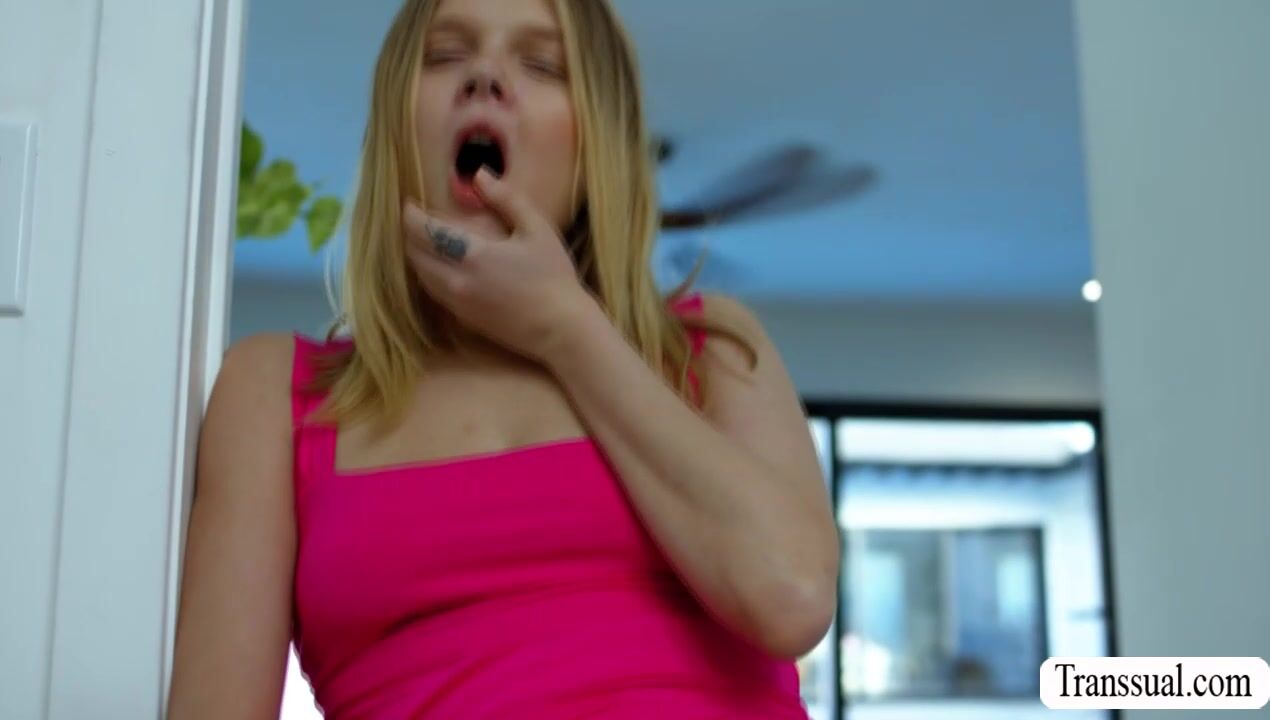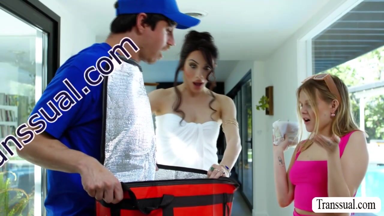 Busty shemale stepmother caught her stepdaughter flirting with the delivery man.She got mad and brings the delivery man into her room and suck his dick before she rides it.Go to Transsual.com for the full video of this and more related.