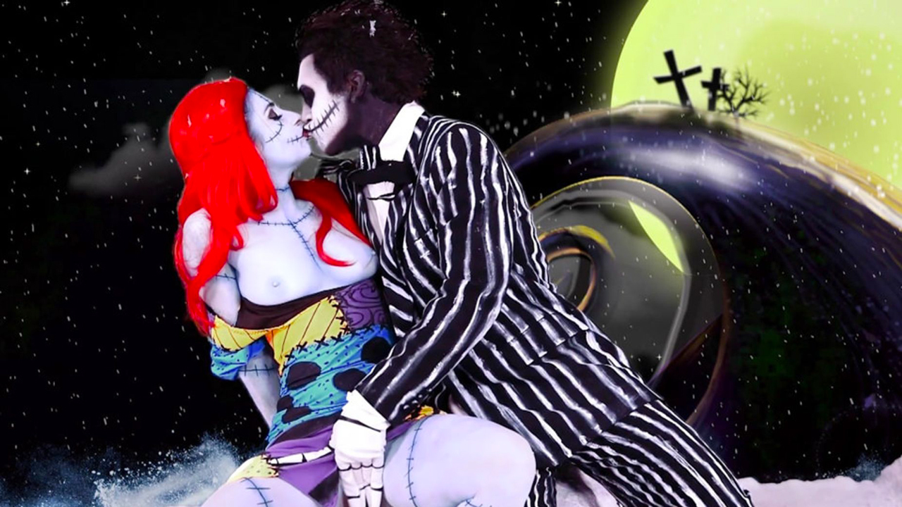 Joanna Angel features in A nightmare before Christmas XXX parody.As Sally is toying her pussy Jack shows up.He shows her his Christmas package is still working.The big tits redhead deepthroats his big cock before he fills her wet snatch with it