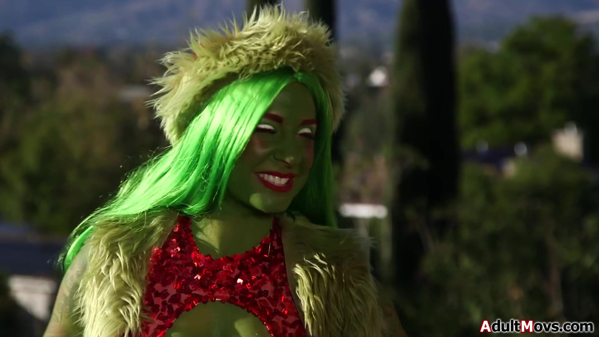 The big tits Grinch couldnt ruin Christmas and now wants it up her ass.The busty fiend finds a hobo and deepthroats his big cock outdoors.She gets doggystyled and gape from being butt fucked.The big boobs tattooed babe anal rides his hard boner