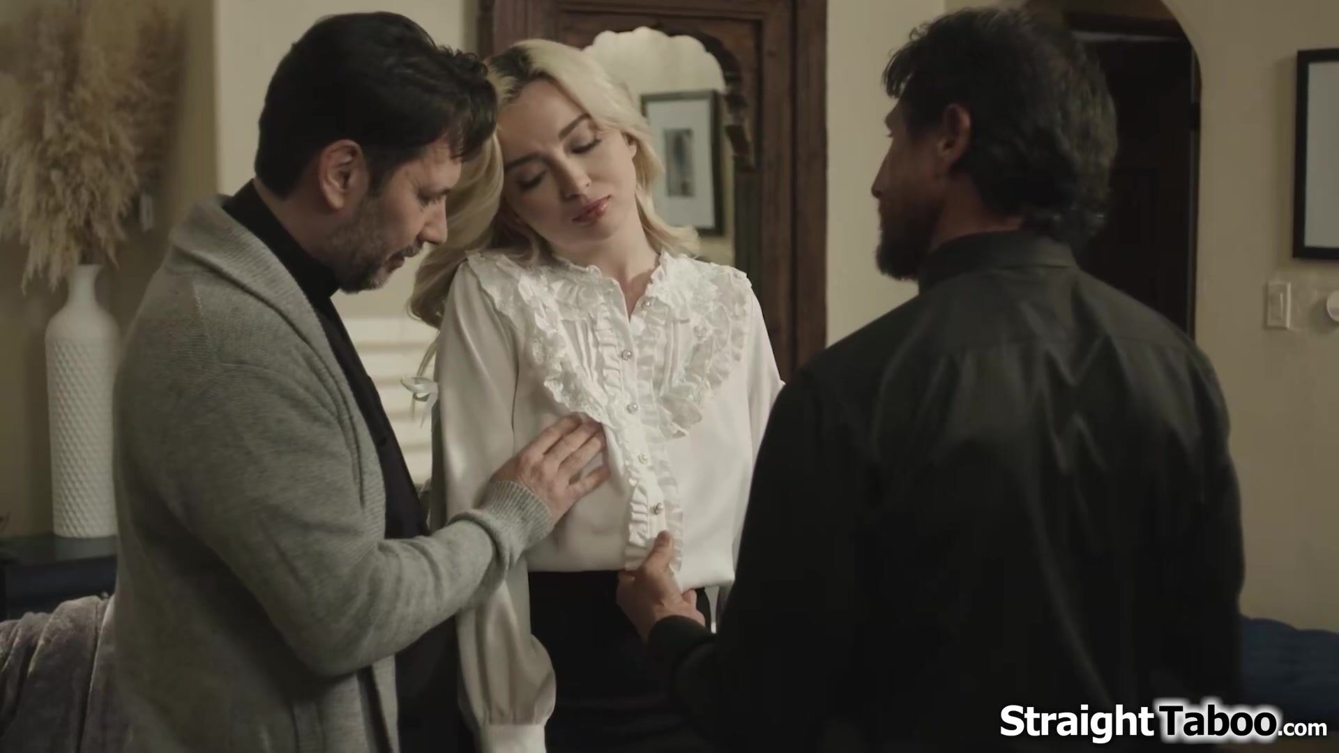 Teen Lexi Lore asks her priest if he can help her with her sinful thoughts.His two colleagues show up and take their dicks out.The blonde has to deepthroat their big cocks and gets pussy licked.After the blonde is fucked theydouble penetrate her