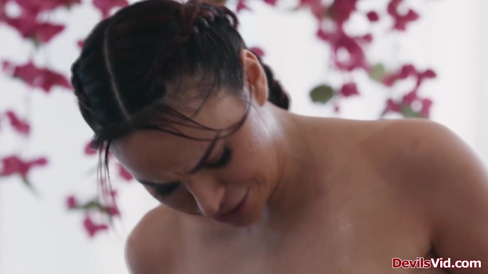 Nuru masseuse Aviana Voilet is doing her daily routine.This time she gets intimate with her client.She gets him hard while shes rubbing her big tits on his back.The big tits babe is sucking his big cock.The guy licks her pussy before they fuck.