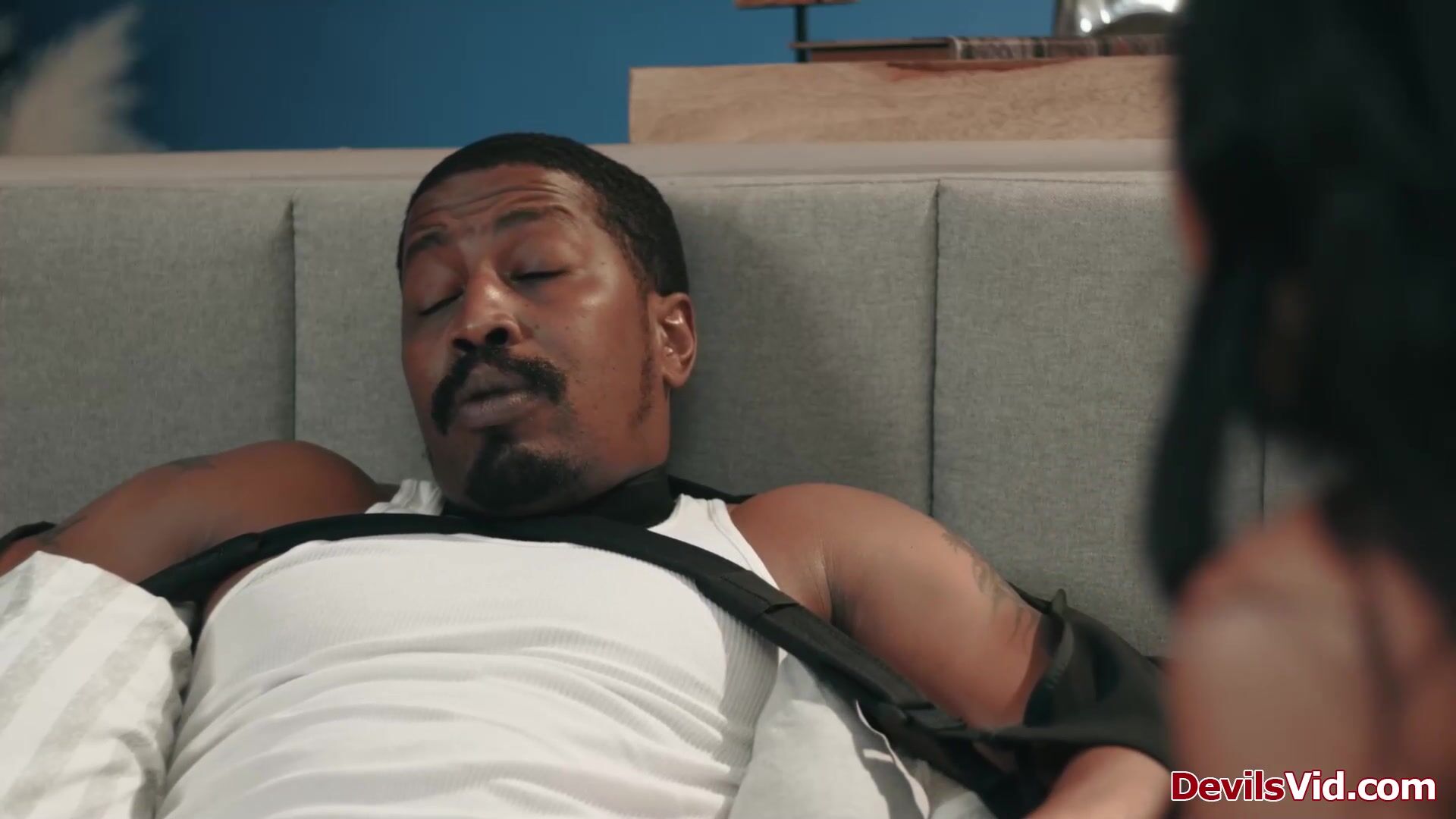 Ebony stepdaughter Ameena Green takes care of her stepdad whos recovering.The old man wants to jerk off so shes doing him handjob.He wants more so she sucks his big black cock.Shes so horny to stop,keeps riding him keeping that bbc inside her pussy.