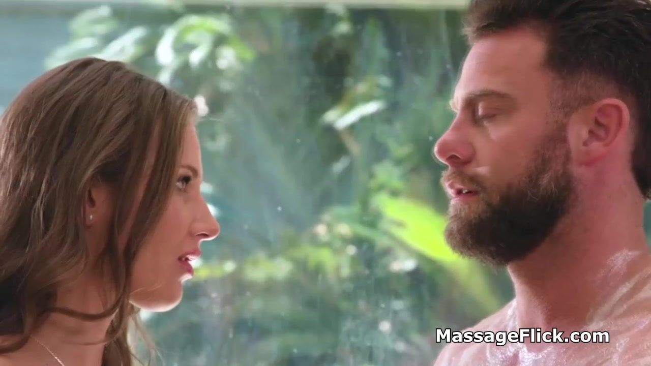 She starts the session in the bathroom. A hot soapy shower is a must for relaxation.. then they move to the air mattress for the full body experience!