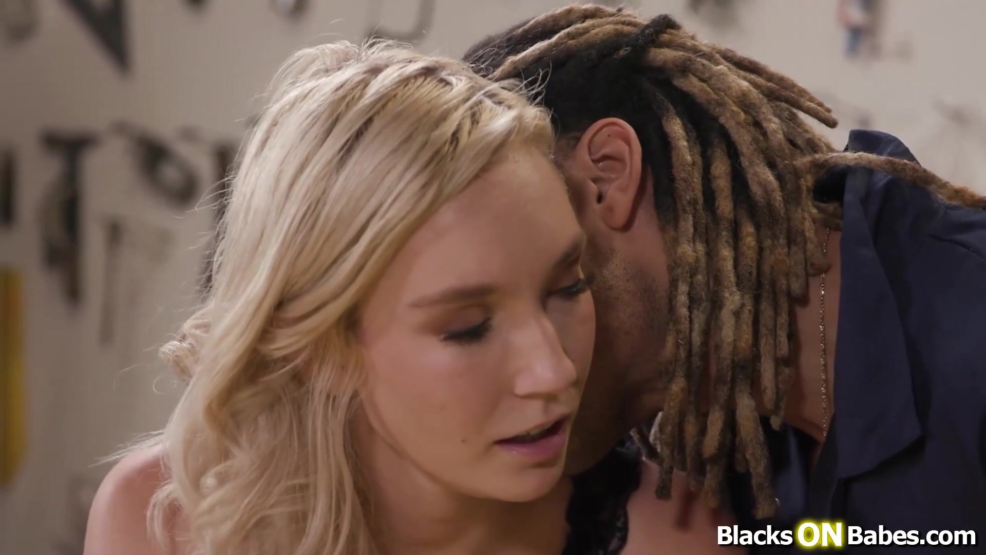 Blonde Claire Roos gets kinky with the black mechanic.The guy caresses her small tits.She gets down and deepthroats his big black cock, spreads her legs and gets her shaved pussy fucked on the hood.Then finally rides his bbc getting her ass fucked.