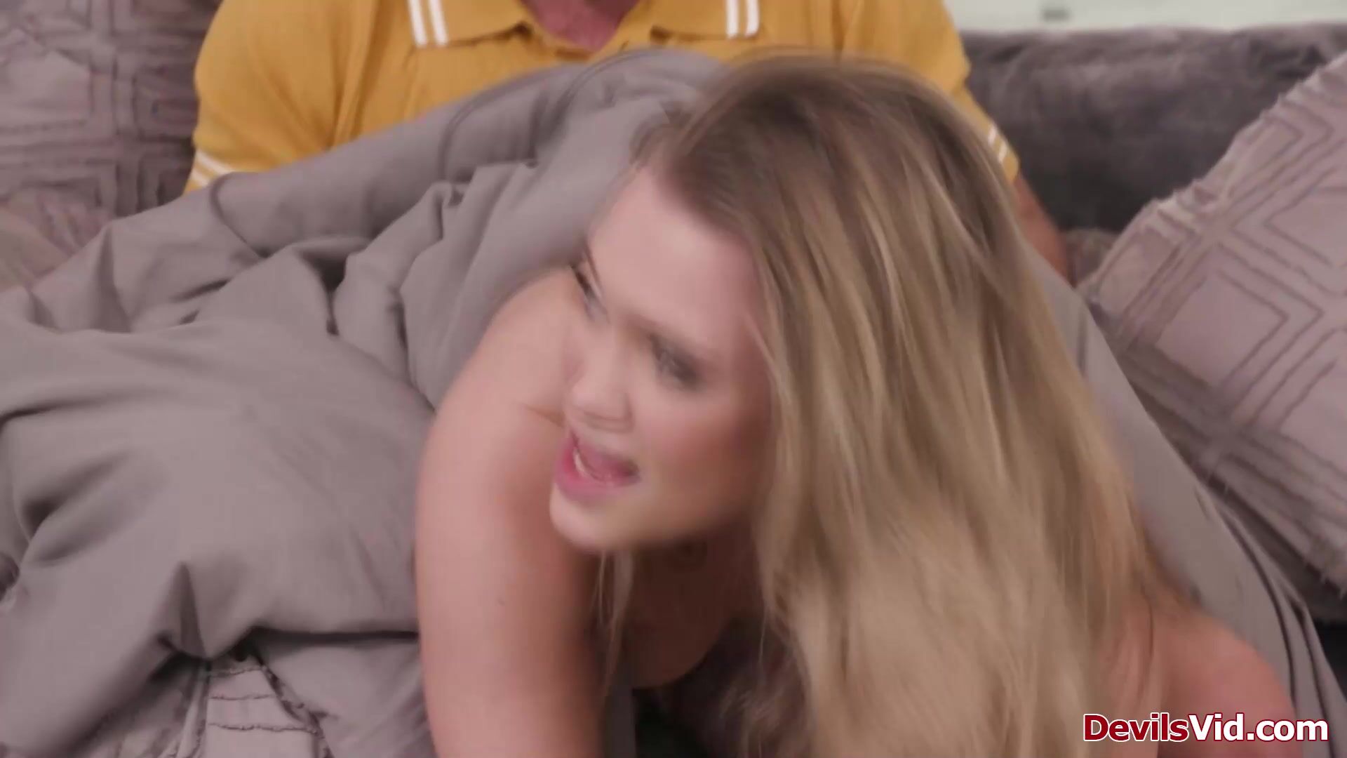 Chloe Rose hides under a blanket while giving stepdad blowjob.She kept it slow coz her stepmom Rachael Cavalli is around.When the milf left,her old man licks her shaved pussy.He is face fucking his petite teen stepdaughter before penetrating her cunt