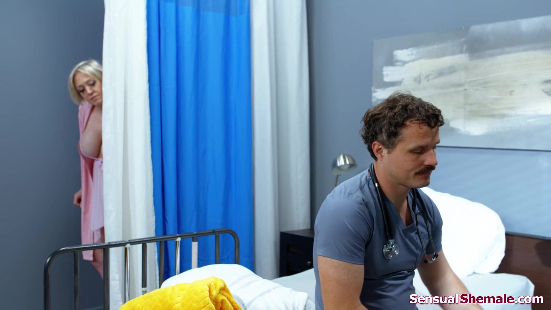 Busty patient Dee Williams catches trans nurse Zariah Aura being anal banged by her colleague.She calls the shemale away so she can fuck him.The latin tranny walks in on them and the milf sucks both dicks.The tgirl bangs the blonde while barebacked