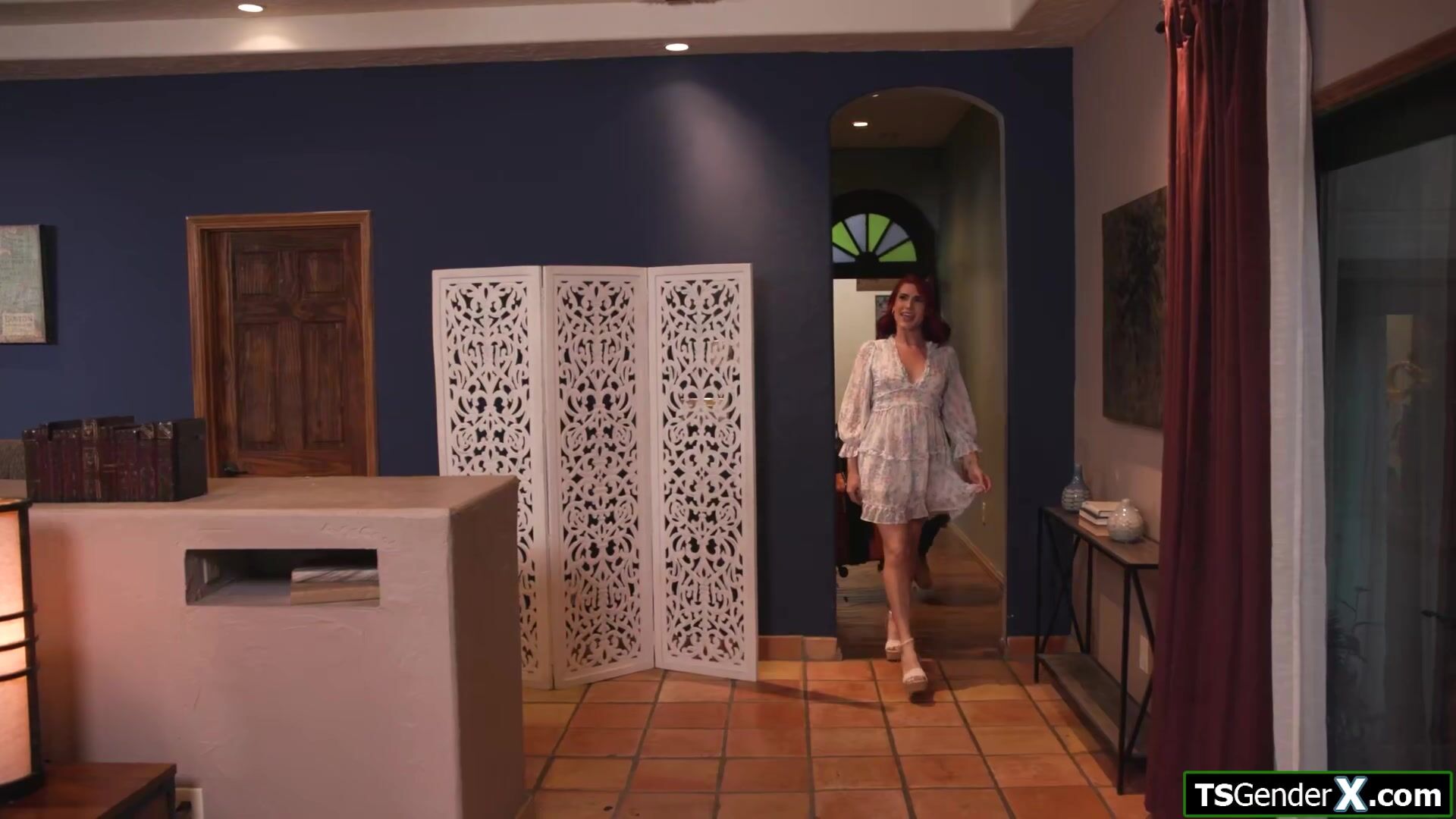 Small tits redhead tgirl really wants her guest to fuck her.In the bedroom the shemale takes out his cock and gives him a blowjob.The guys is more than happry to suck her tranny dick and after her rimmed the trans she bareback anal rides in his dick