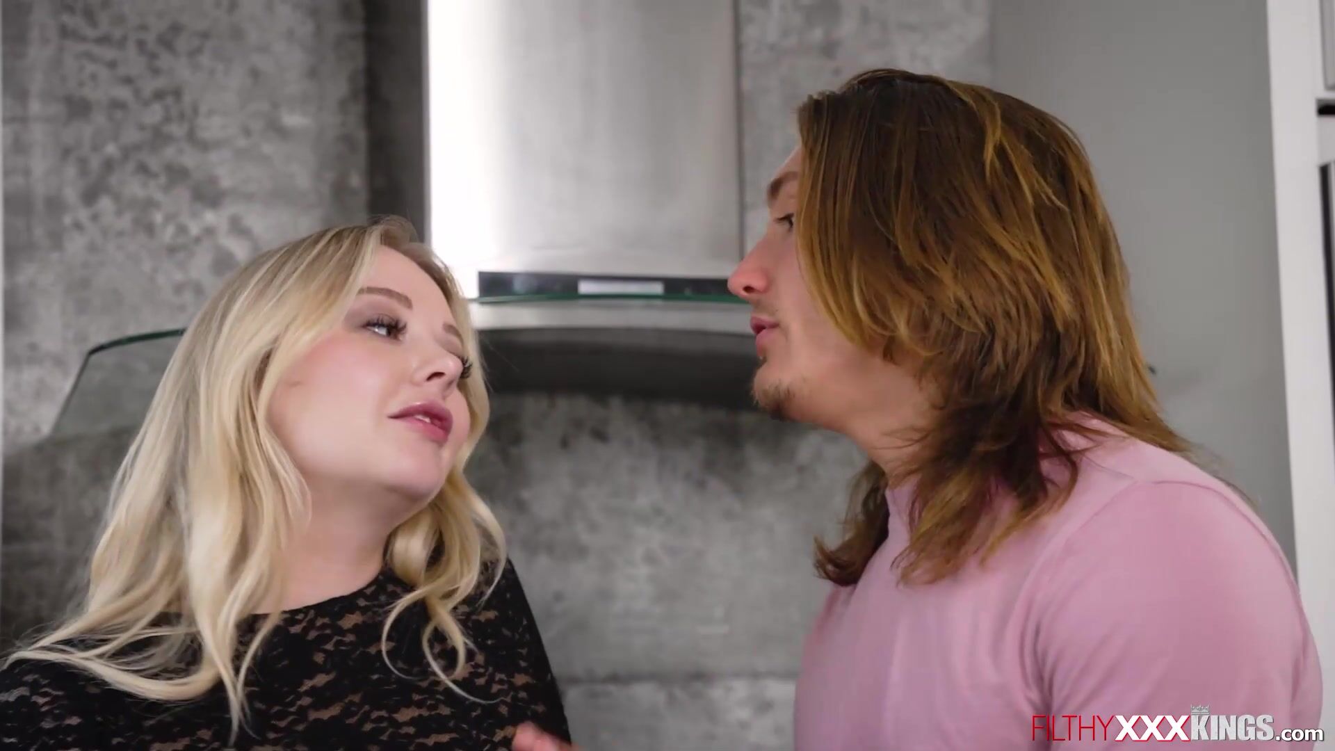 Milf Lucky Kay isnt satisfied with just her stepson.She called up her husband to join the threesome.Stepson is fucking his stepmoms shaved pussy then cums on her face.His stepdad takes over banging the blonde cougar while grabbing on her big tits.