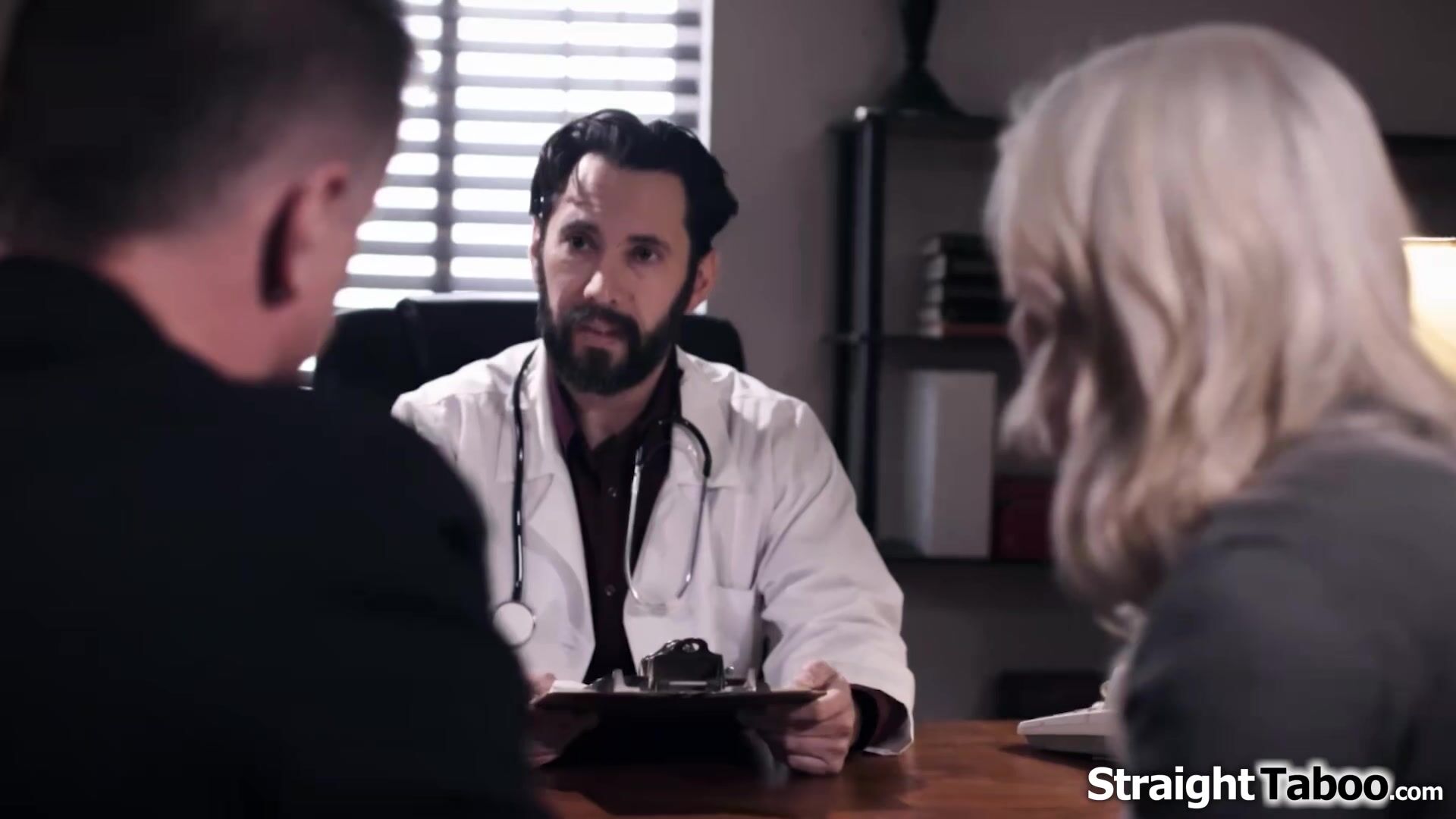 Doctor Tommy Pistol offer to impregnate Eric Mastersons wife Kenzie Taylor for him.The busty milf convinces her husband and he watches her deepthroat the doctors cock.Its hard to keep giving the blonde emotional support while she gets fucked ifo him