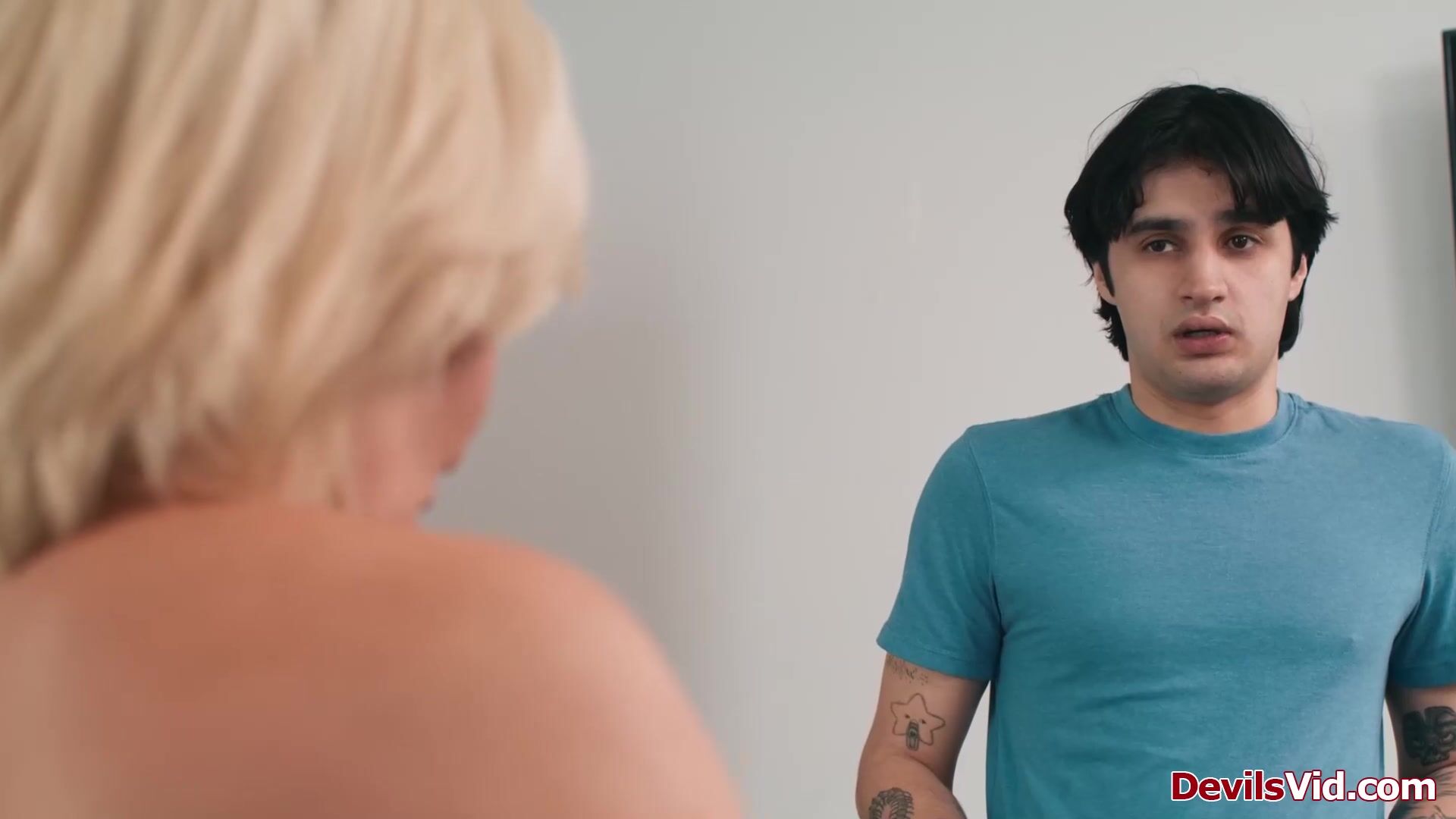Ryan Keely was caught by her stepson cheating.The big tits milf finds out hes sniffing her lingerie.The guy promised to stay silent in exchange of him licking her hairy pussy.The busty blonde stepmom is giving him blowjob then rides his big cock.
