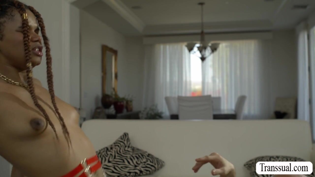 After my TS Ebony companion felt heated in her body, I let her suck my hard shecock. I then fucked her moist large ass really hard and deeply, and you can watch the complete video of this and more on Transsual.com.